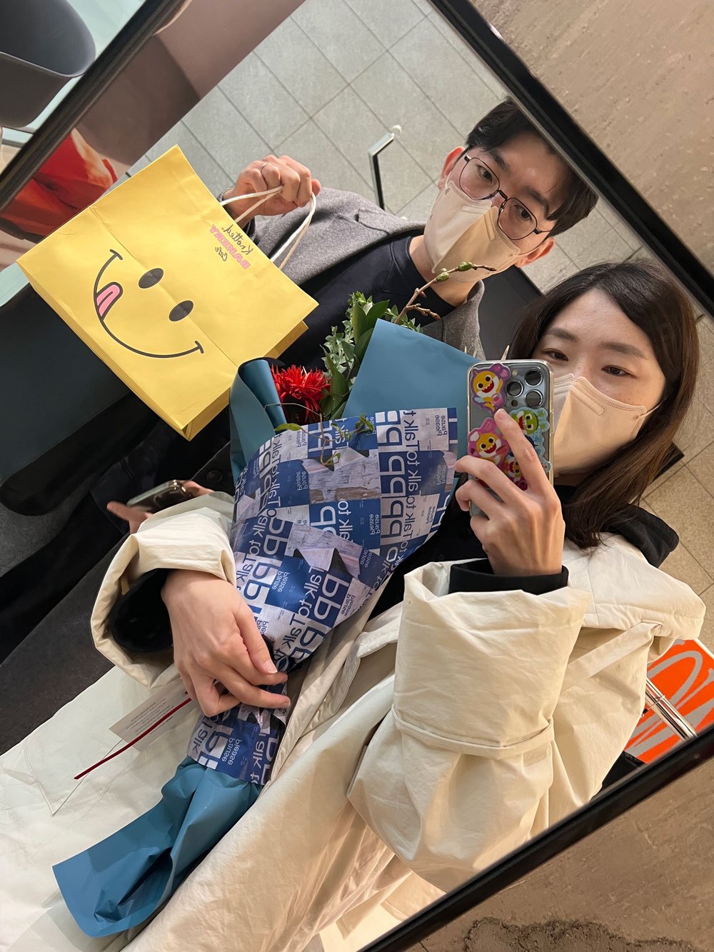 한섬디자이너 동생 구효이님도 역시나 감각적인 꽃다발을 들고 축하해주니 이거 참 빨리 보답하는 행사를 열어야겠다 라는 또 이상한 기획력을 펼쳐봅니다.
