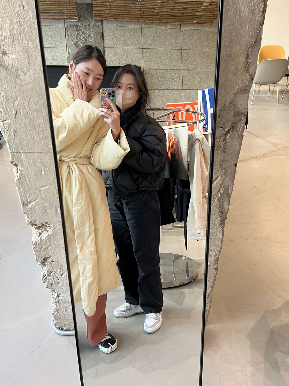 피피가 팝업을 하고 있으니 제품을 바로바로 보여줄 수 있어서 좋네요. 미팅 할 때마다 옷을 바리바리 싸고 들고 다녔는데 요즘에 저희 팝업 중이니 이곳에서 미팅을 하자고 제안합니다.