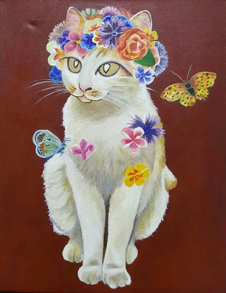 저는 이 친구에게 '천경자'라는 이름을 지어주었습니다. 왜냐고요? 그냥...... 느낌이 그래서요. 천경자 화가님의 미인도를 보면, 눈빛이 항상 금빛이지 않나요? 그 이미지가 닮았다는 생각이 들었습니다. 그래서 이 친구를 모델로 삼아 천경자 화가님의 '미인도'를 패러디 한 '미묘도'를 그려봤습니다.