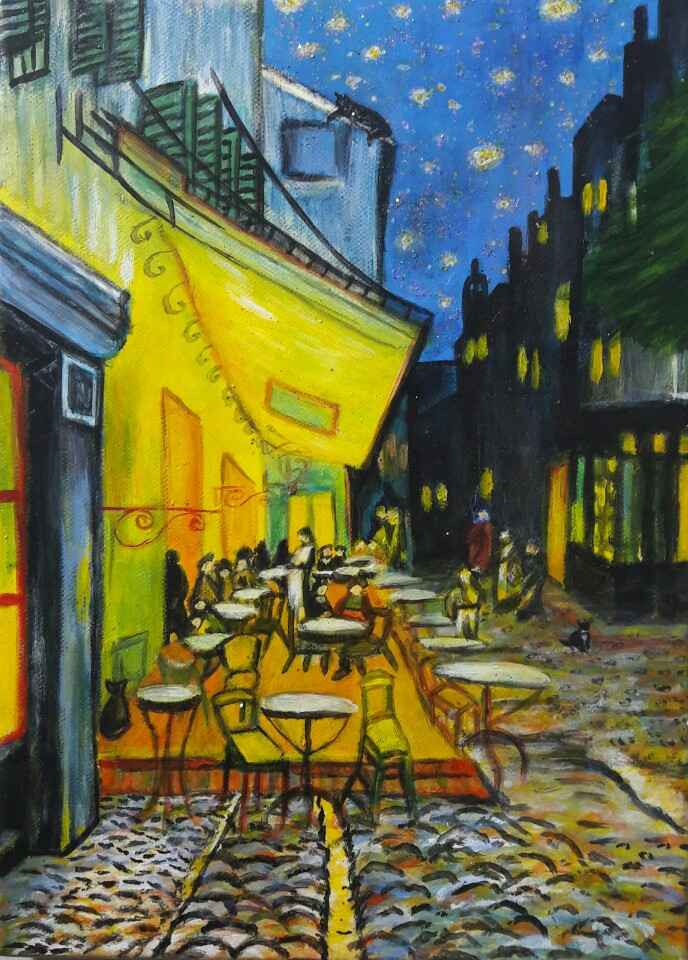 블루는 거닙니다. 고흐의 '밤의 카페테라스'를.