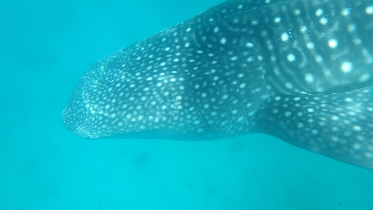 고래상어 옆에서 수영을 했습니다.