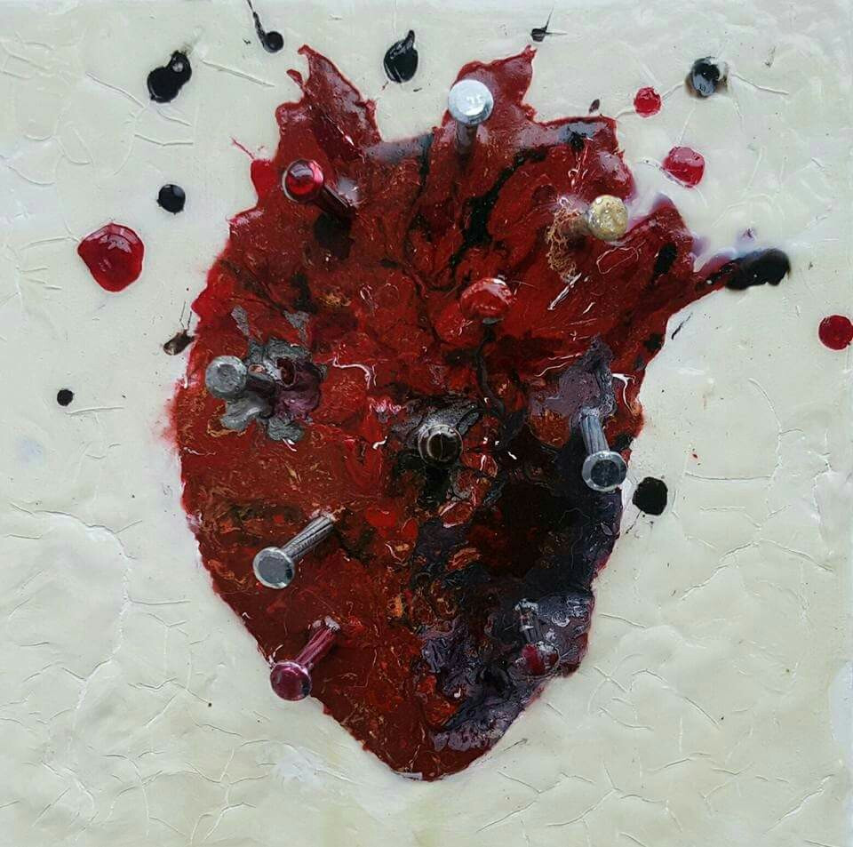 Resin, acrylic & nails on wood panel, 2016, 15.0cm * 15.0cm (1.5호) by Nari Kim