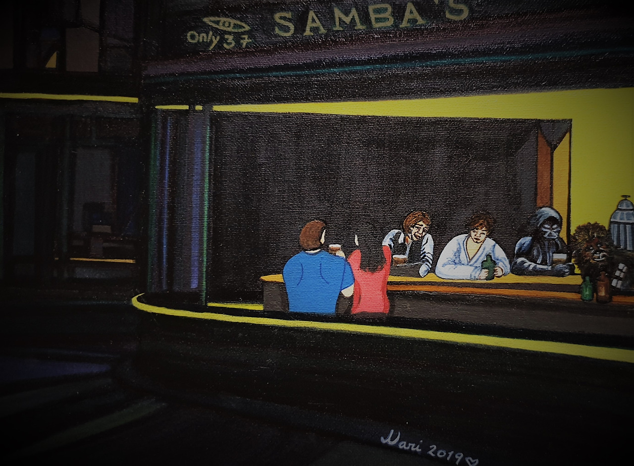 에드워드 호퍼의 작품 'Nighthawks'가 떠올랐습니다.