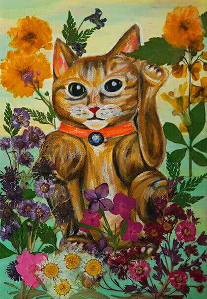 Acrylic & pressed flowers on canvas, 2016, 16.0cm * 24.0cm (2호) by Nari Kim