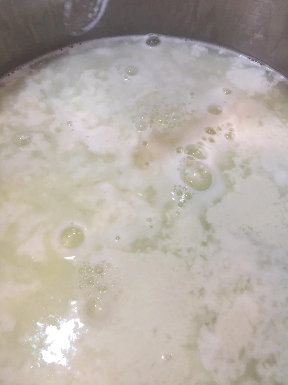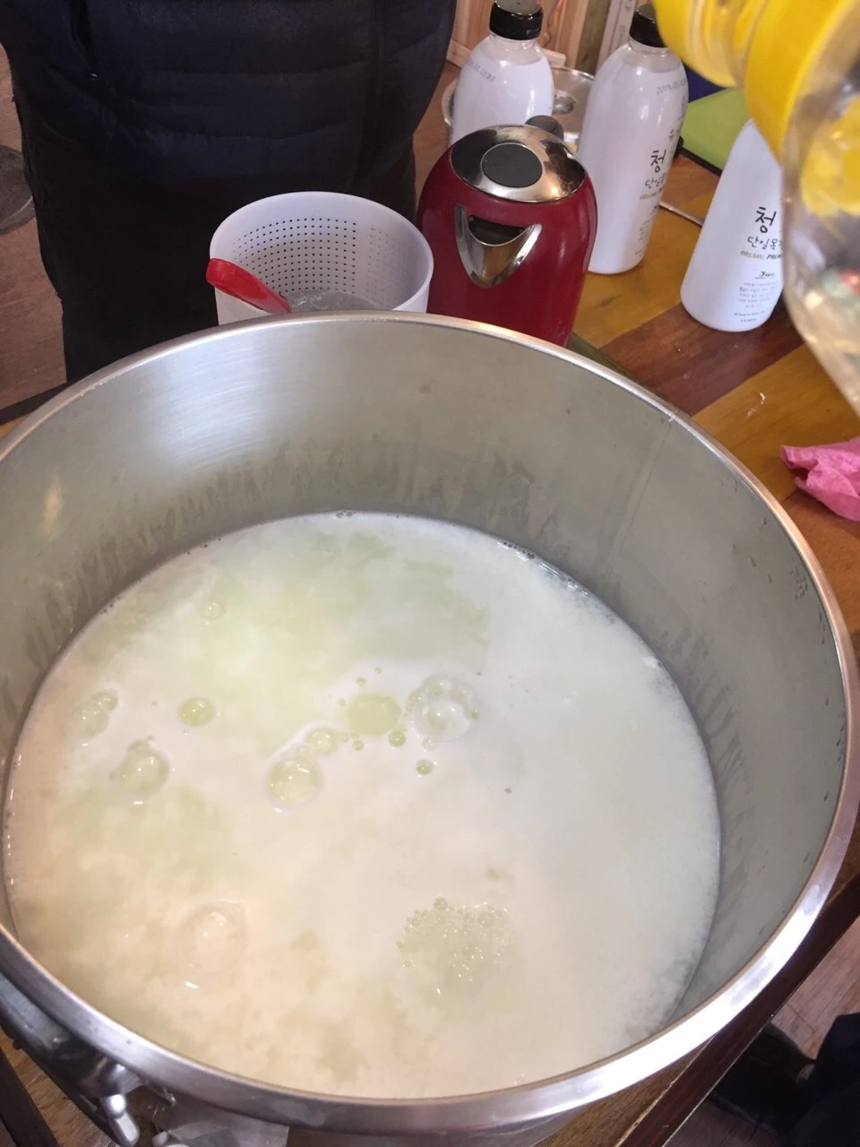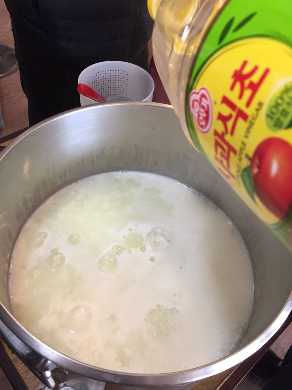 2. 유청 커드가 생길때 까지 유산균(또는 식초)을 첨가한다.
