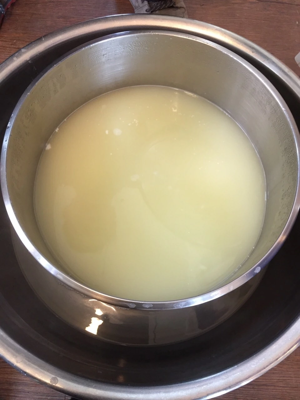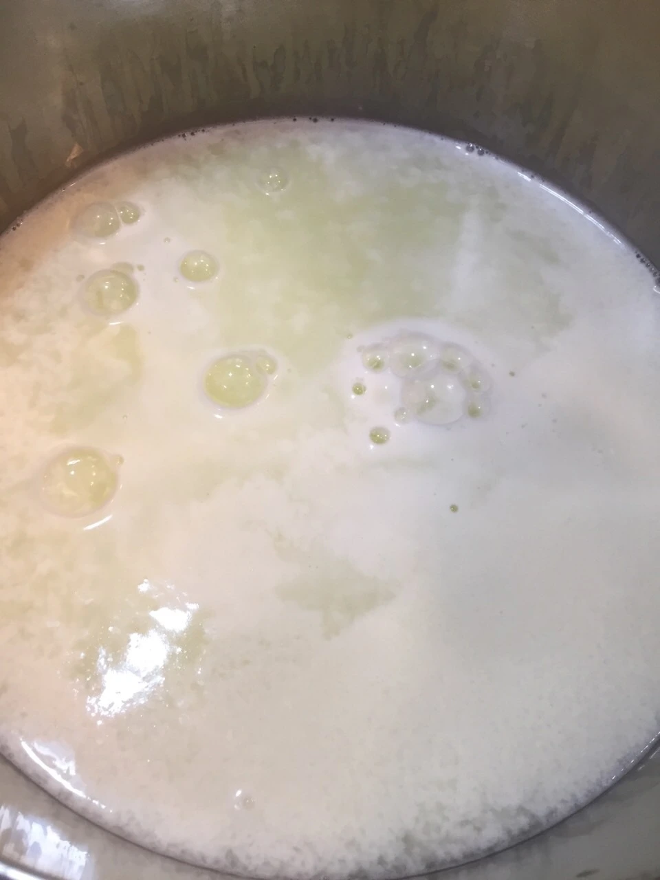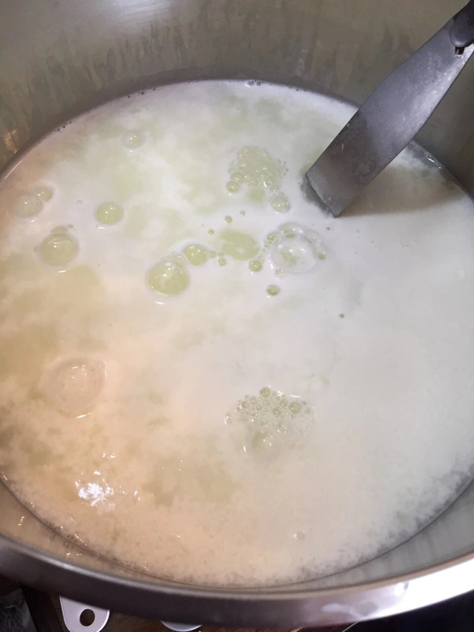 2. 유청 커드가 생길때 까지 유산균(또는 식초)을 첨가한다.