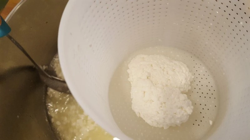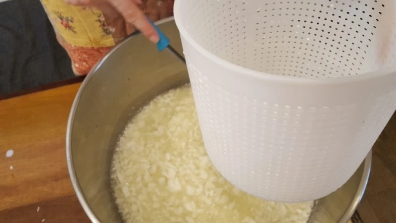 2. 렌넷 : 우유10리터에 렌넷 1.5ml를 렌넷의 10배 물과 희석하여 우유에 첨가한다. 주의할 점은 렌넷 첨가 후 많이 젖지 말고 빠른 시간내에 잘 희석한 후 정치한다.