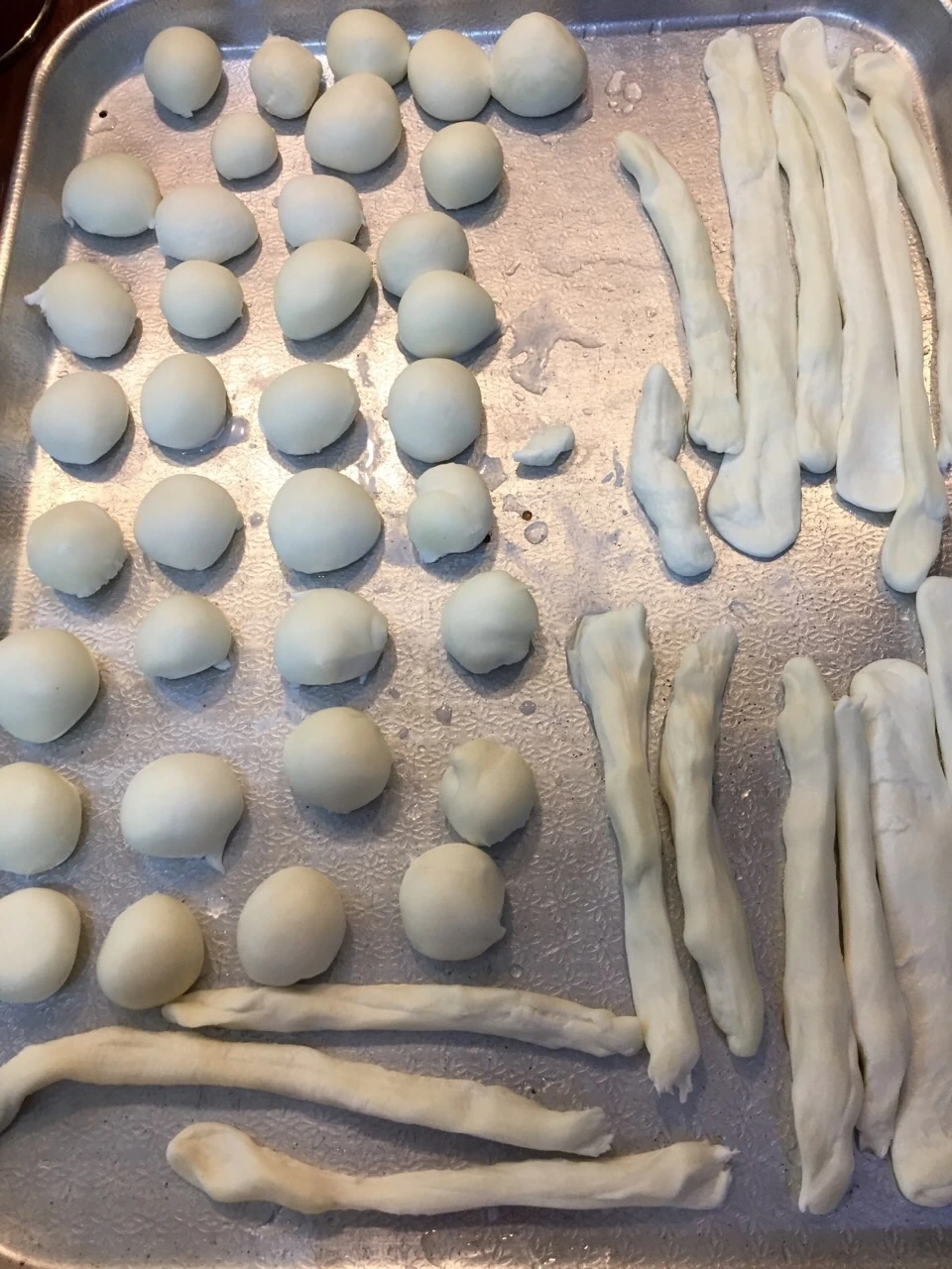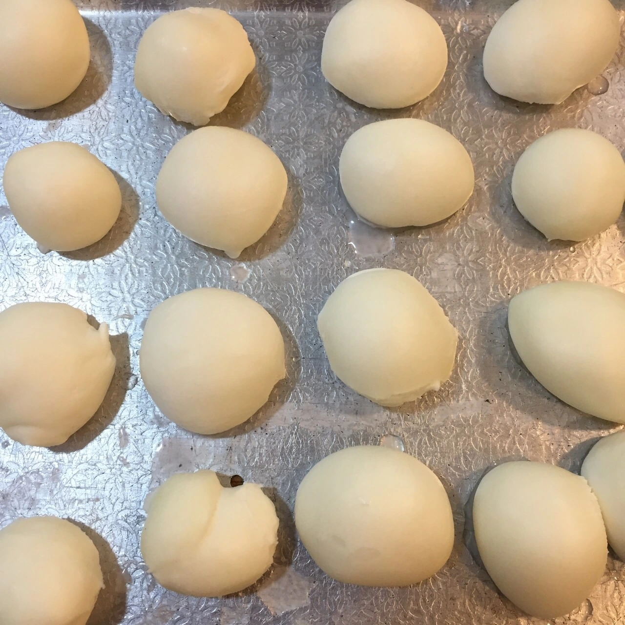 11. 성형 : 적정 상태가 되면 뜨거운 물에 담궈서 반죽후 성형한다.(모짜렐라&스트링치즈)