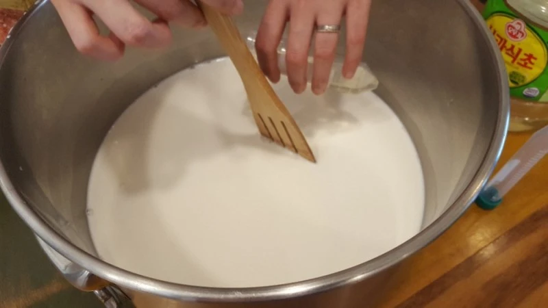 1. 가온 : 준비한 우유를 중탕하여 36°C가 되게 한다.