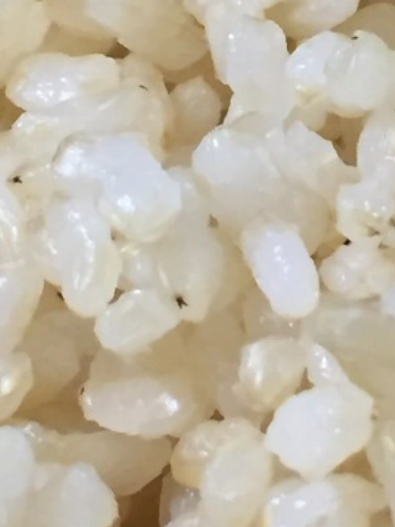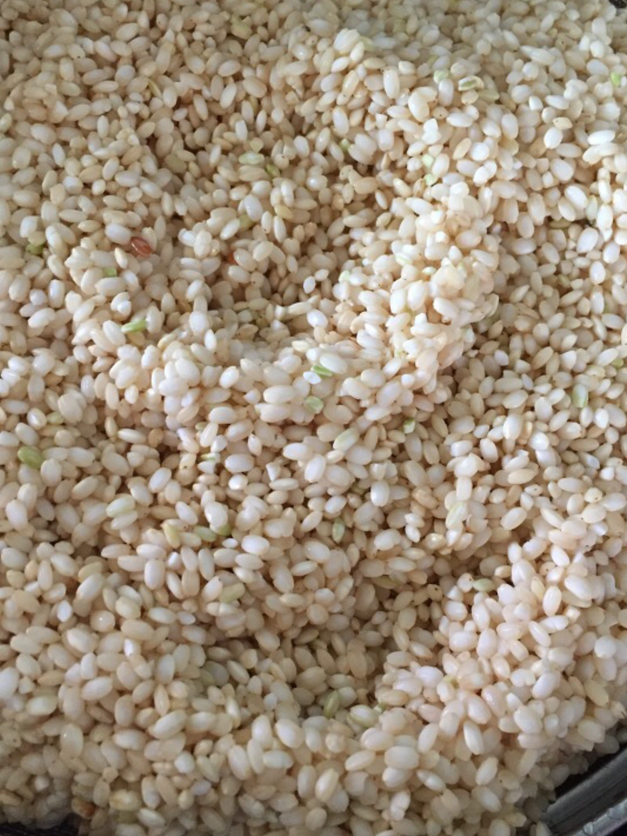 내가 최근에 막걸리 주조를 의뢰받으면서 받은 쌀이다. 현미인 해당 쌀의 상태는 보다시피 배유부의 일부가 전분이 불충분한 미숙입자였다. 백색의 불투명한 부분이 거의 모든 입자 표면의 1/2 또는 1/3 이상을 차지하고 있는 유백미숙입자였다.