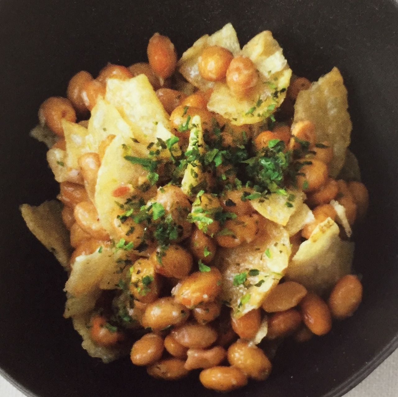 단골 스낵인 포테이토칩, 오징어, 다시마는 각각 단품으로 먹어도 멈추지 않게 되는 맛입니다. 이 멈출 수 없는 스낵은 아이덴티티가 강한 낫또에 지지 않는 존재감을 발휘하는 식재료입니다. 각각 소금과 감칠맛이 있으므로 낫토와 베리에이션하면 조미료를 넣지 않아도 맛이 완성됩니다. 그저 베리에이션만 했는데 깊이 있는 맛이 완성됩니다. 단 2분만에 ^^
