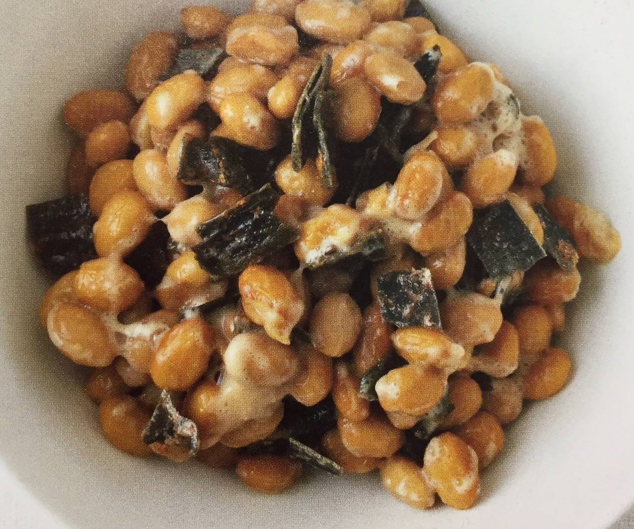 볼에 낫토를 넣고 안주 다시마를 잘게 썰어 넣고, 끈기가 나올 때까지 잘 섞어 완성합니다.