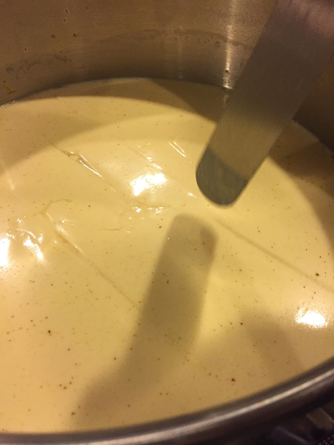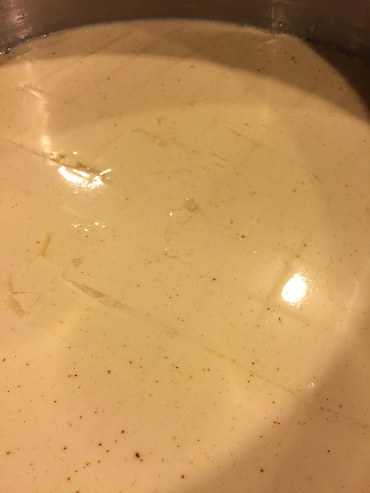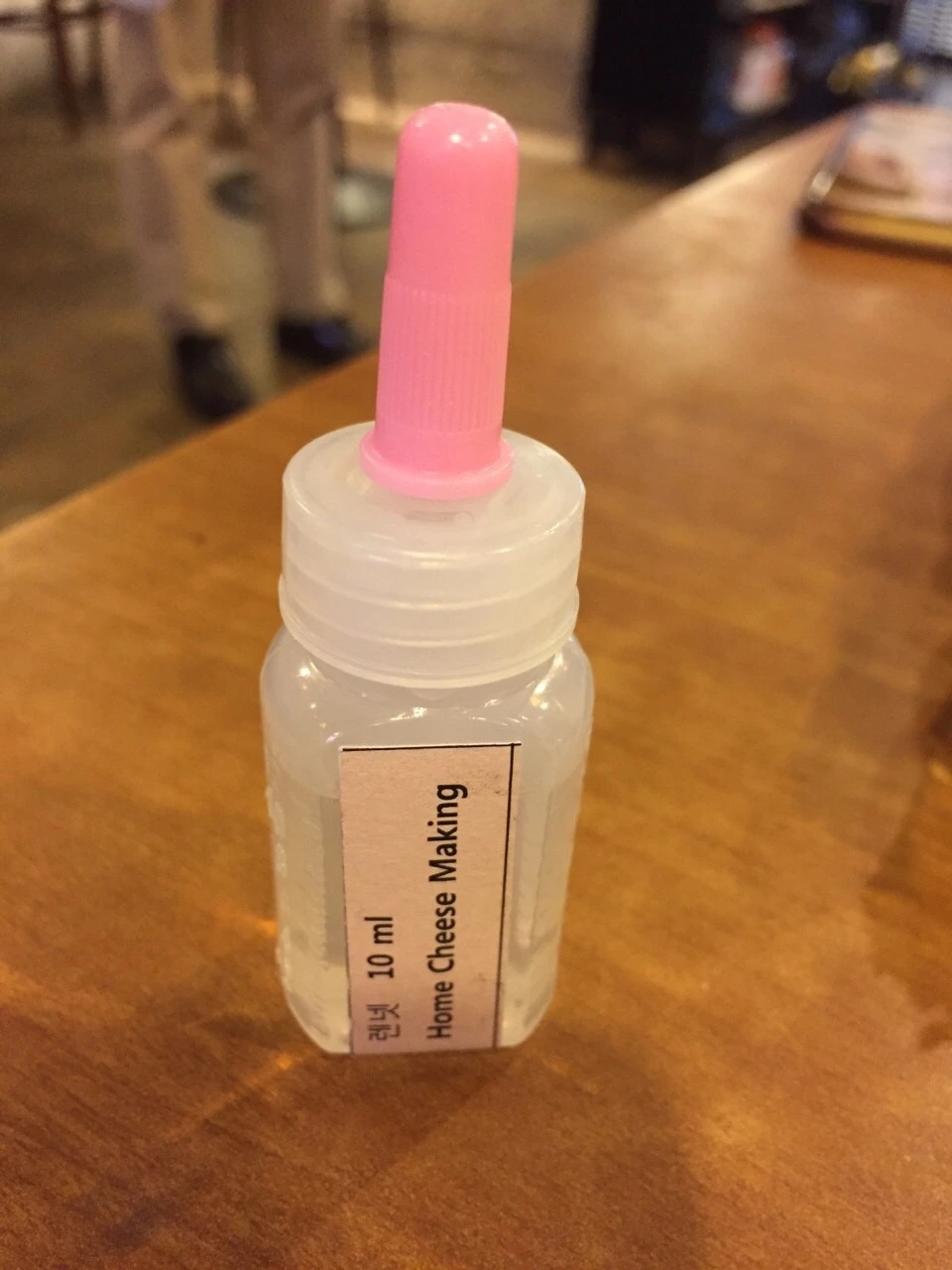 준비한 렌넷을 넣고 30회 정도 국자로 천천히 저은후 뚜껑을 덮고 60분 기다립니다. 커드가 만들어진 단단한 상태를 확인후, 만일 부족하면 30분 정도 더 기다립니다.