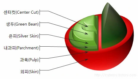 커피콩이라고 하는 것은 콩이 아니다. 커피 씨앗이다. 즉 커피 씨앗은 커피나무로 자라게 될 열매 씨앗인 것이다.