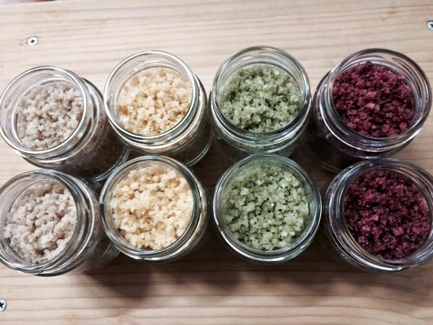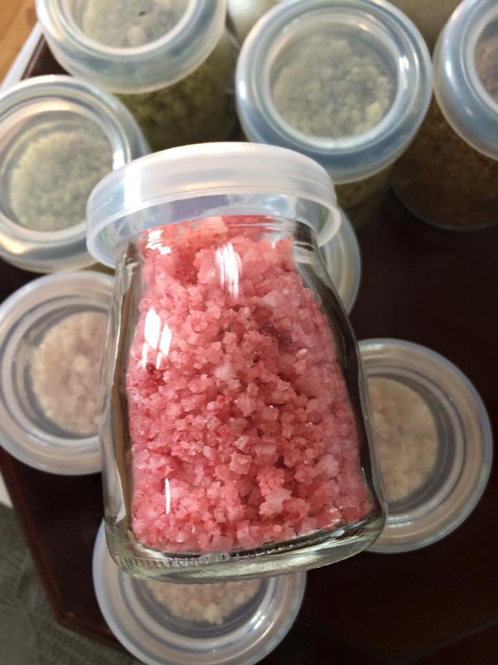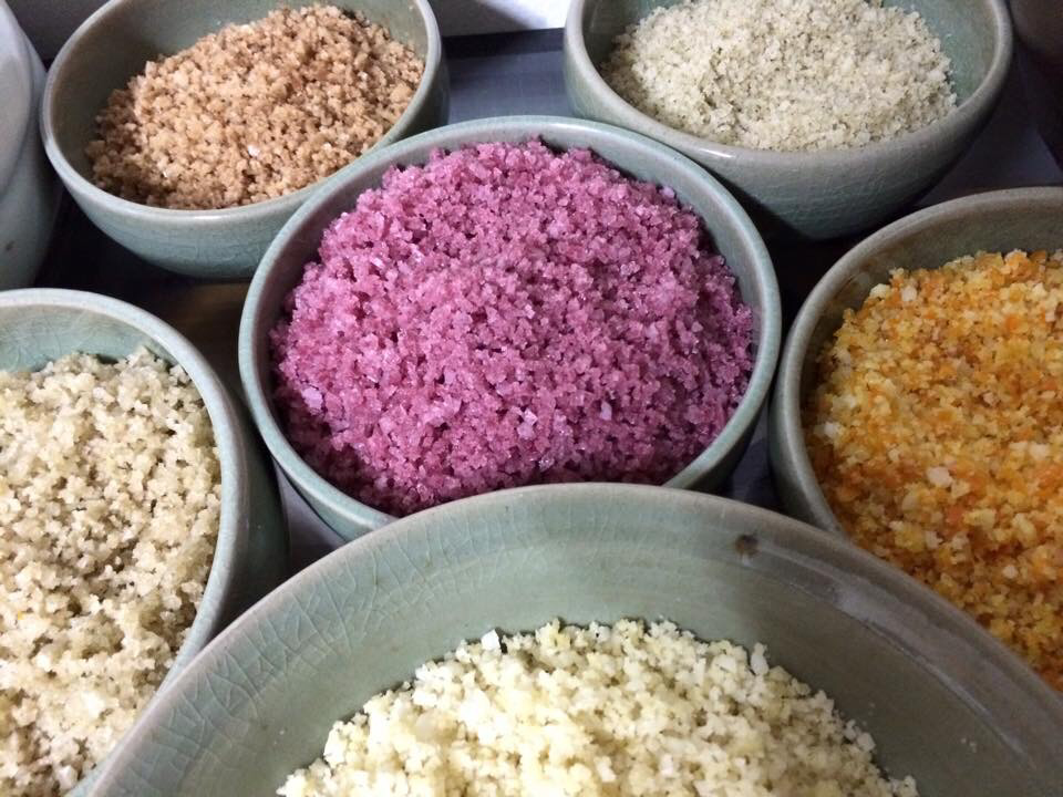색 이화주 막걸리 타잎, 요플레 타잎, 소주 타잎을 완성하자 색 이화주 안주로 색 소금은 어떨까? 해서 만든 색 소금.(강의 할 재료가 없다며 가르쳐 달라해서 무료로 가르쳐 주었더니 내 이름 쏙 빼고 전국에 강의 다니는 모씨도 있고, 손님에게 무료로 준다며 가르쳐 달라해서무료로 가르쳐 주었더니 특허 신청해서 신지식인이 된 모씨도 있다만 그네들의 색 소금은 초창기에 나조차도 신기하던 때의 색 소금이라 안정적이지 않다. 성급한 헌팅을 도둑한 딱 그만큼에 머물러 있을 색 소금)