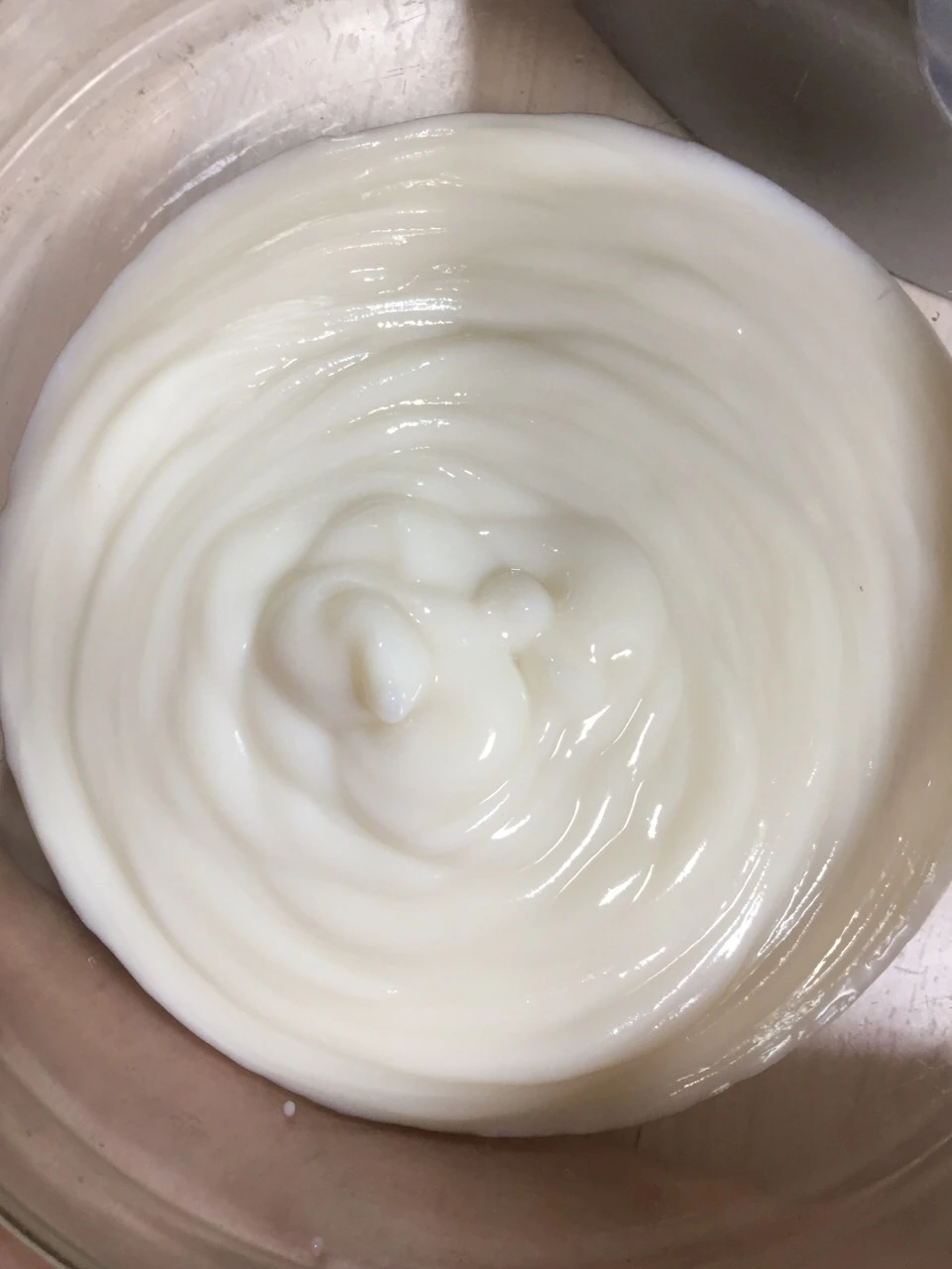 3. 2에 하얀술 1팩을 휘핑기로 저어가며 서서히 넣어고루 섞어준다.