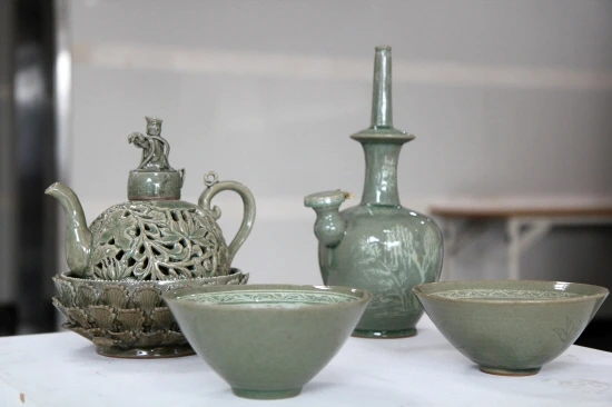 청자는 흙의 성질이 물러서 두텁다. 9첩반상기로 차린 상은 혼자 들을 수 없는 무게이다. 그럼에도 불구하고 대부분의 청자반상기가 9첩반상기인 이유는 9첩 반상이 반가집의 최고 상차림이었기 때문이다.