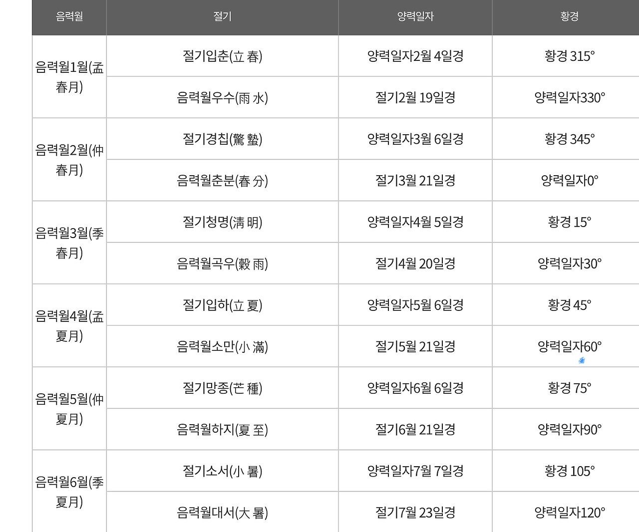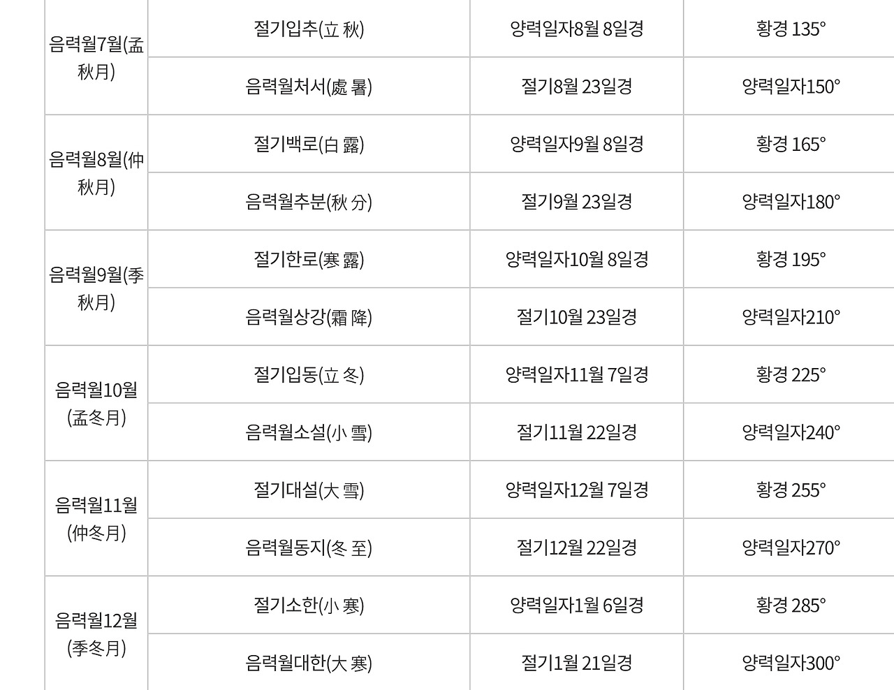 태양년을 태양의 황경에 따라 24등분한 기후의 표준점