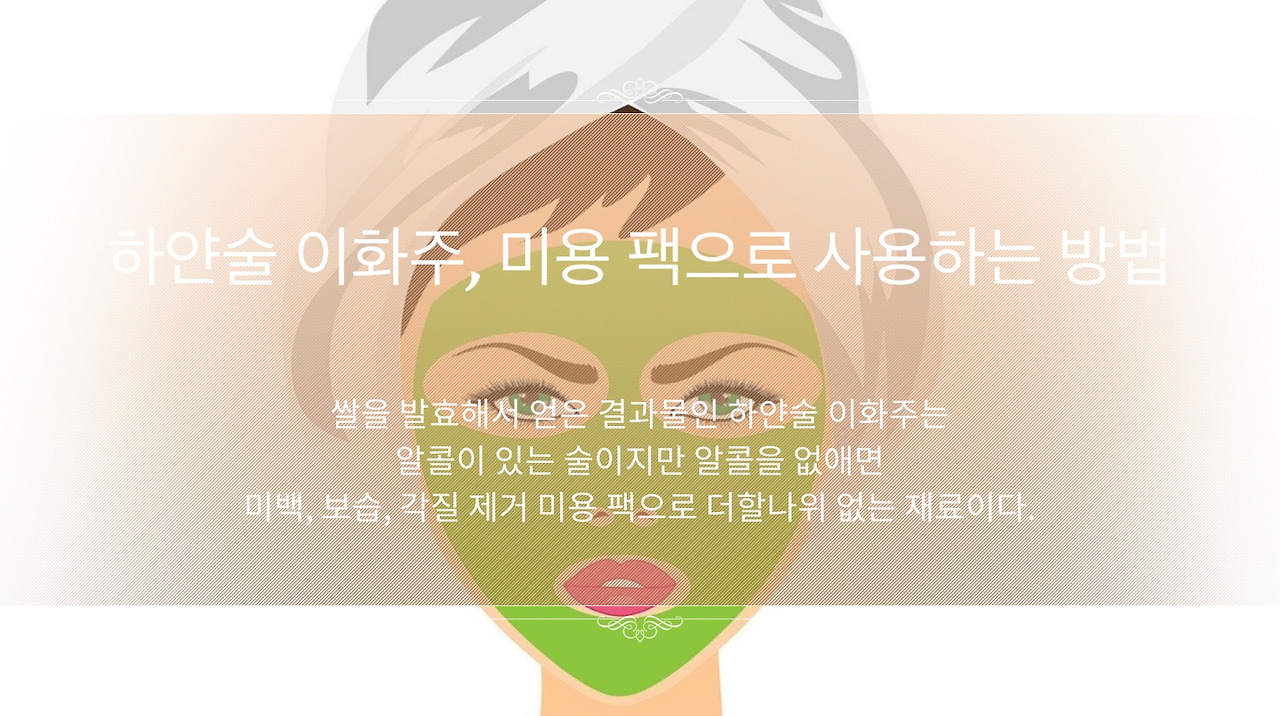 쌀 발효 술인 하얀술 이화주는 미백, 보습을 목적으로 천연비누 재료로 꾸준히 애용하고 있다. 같은 목적으로 미용 팩 역시 고가로 마사지 샵에서 서비스하고 있다. 하얀술 여성 고객들의 미용 팩 사용 문의가 쇄도하고 있어 10년 이상 공유하고 있는 하얀술 이화주, 미용 팩으로 사용하는 방법을 정리했다.