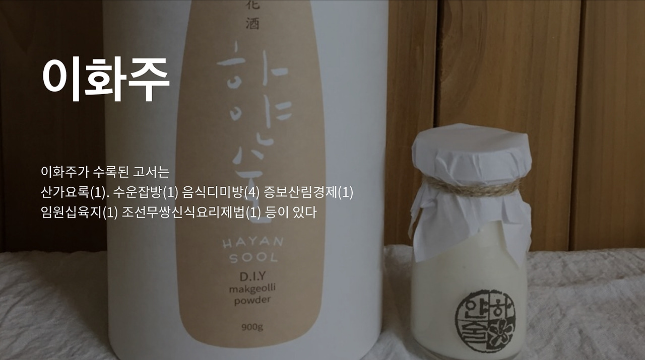 수운잡방에 기록된 이화주는 다음과 같다.