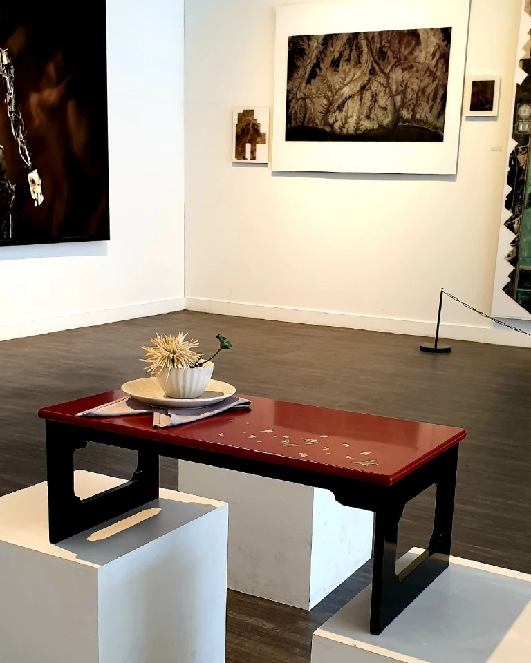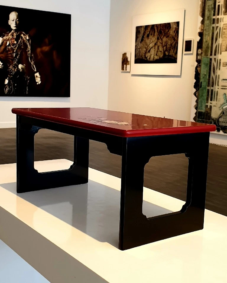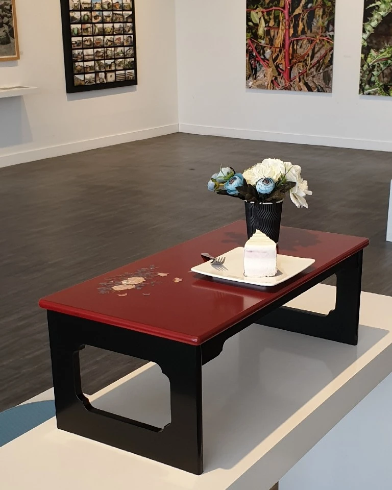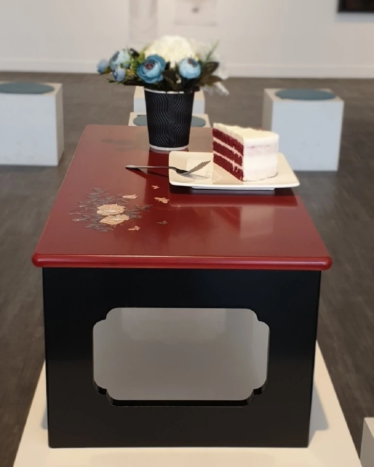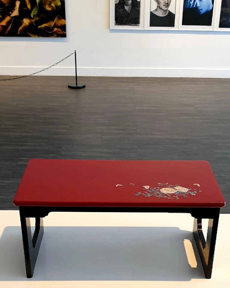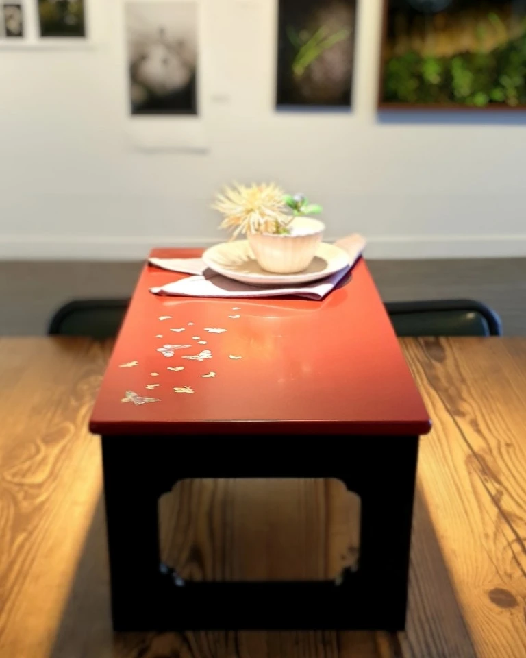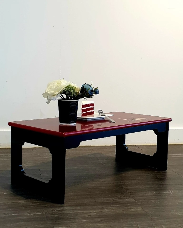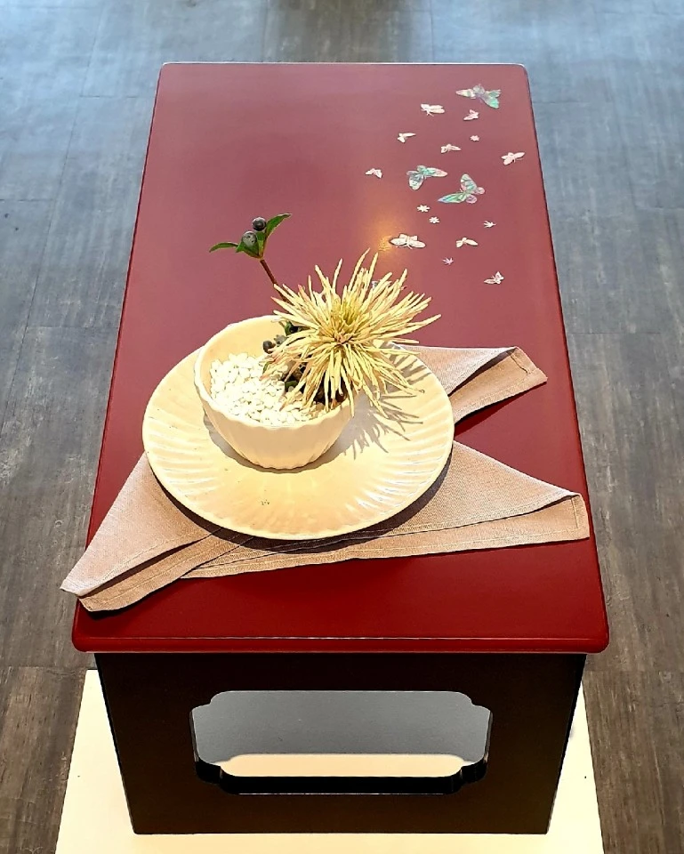 하얀술 고객 서비스 나전칠기 소반입니다. 전통 짜맞춤 강원반입니다. 뒤틀림 방지를 위해 자작나무합판을 사용했습니다. 자개박이는 모란꽃 문양과 나비 문양 두 종류 입니다. 상판은 주칠 옻칠로 마감했고 다리는 흑칠 옻칠로 마감했습니다.