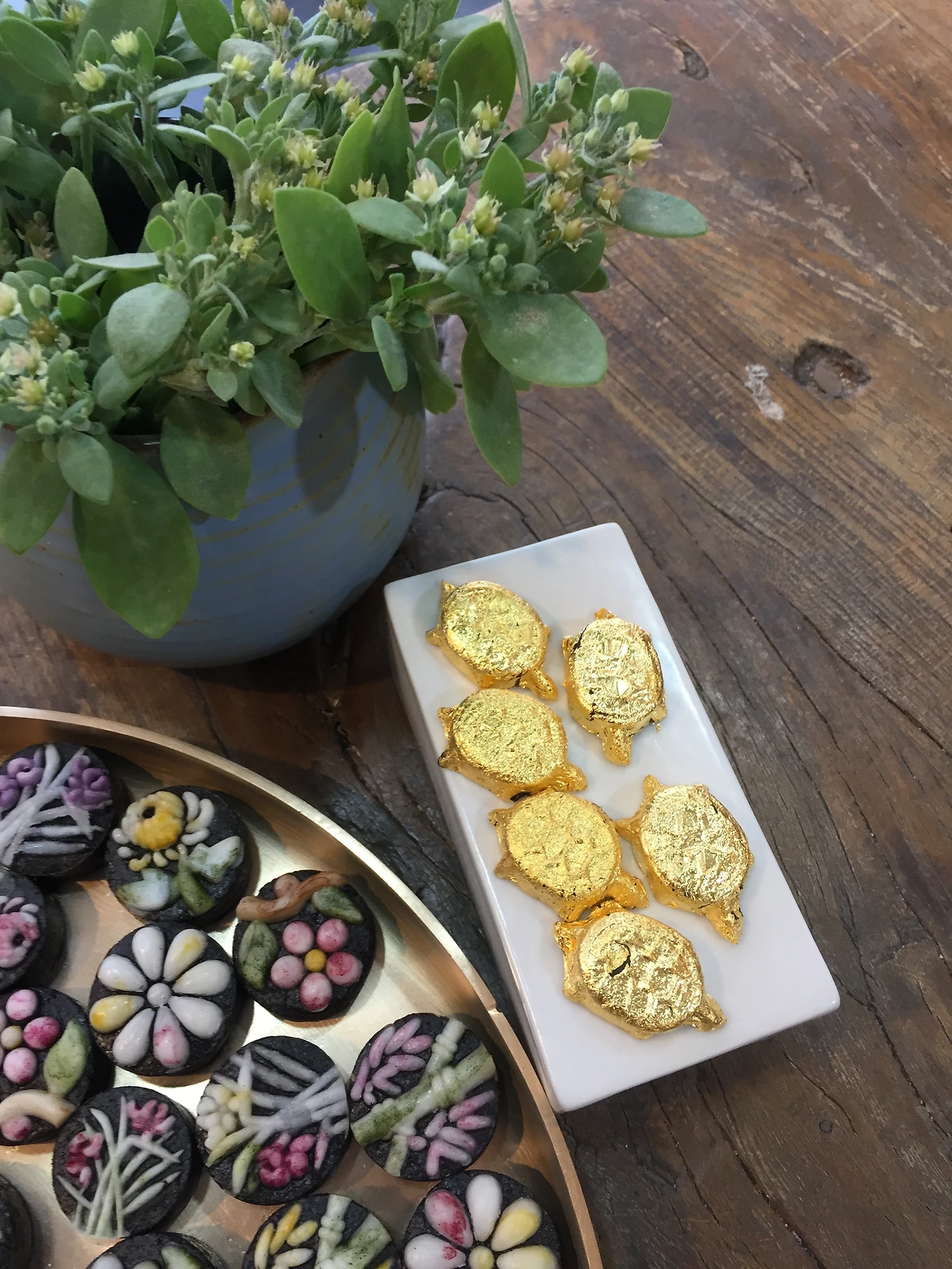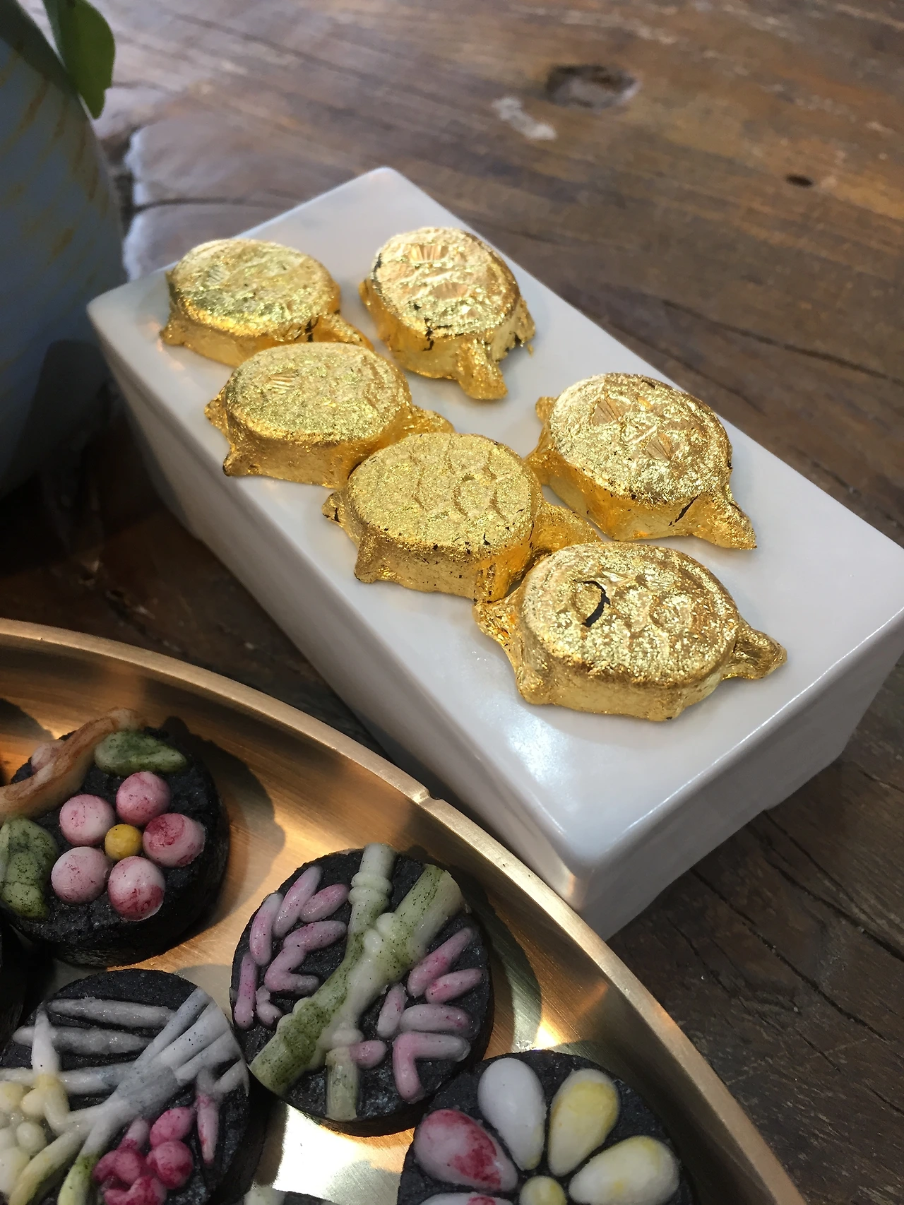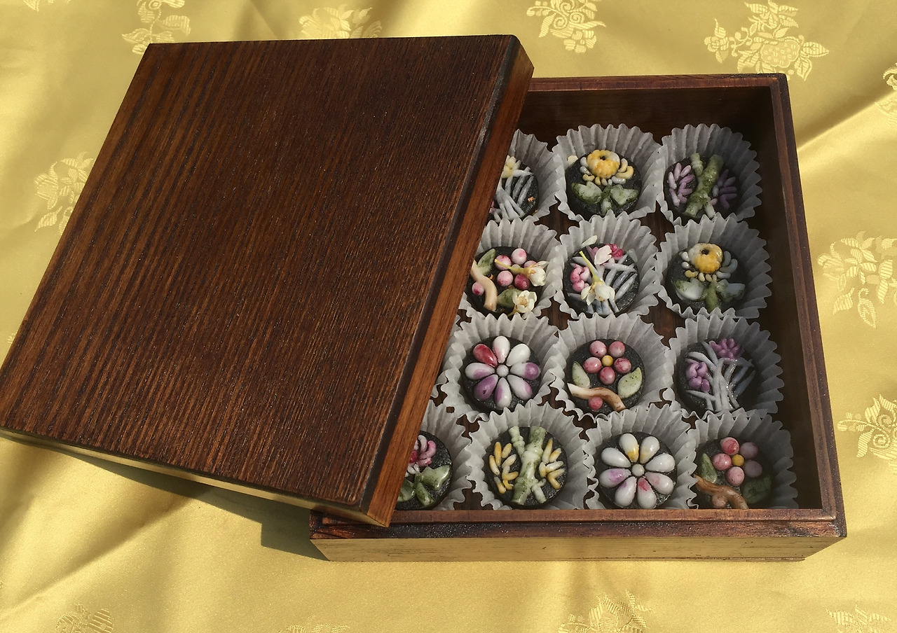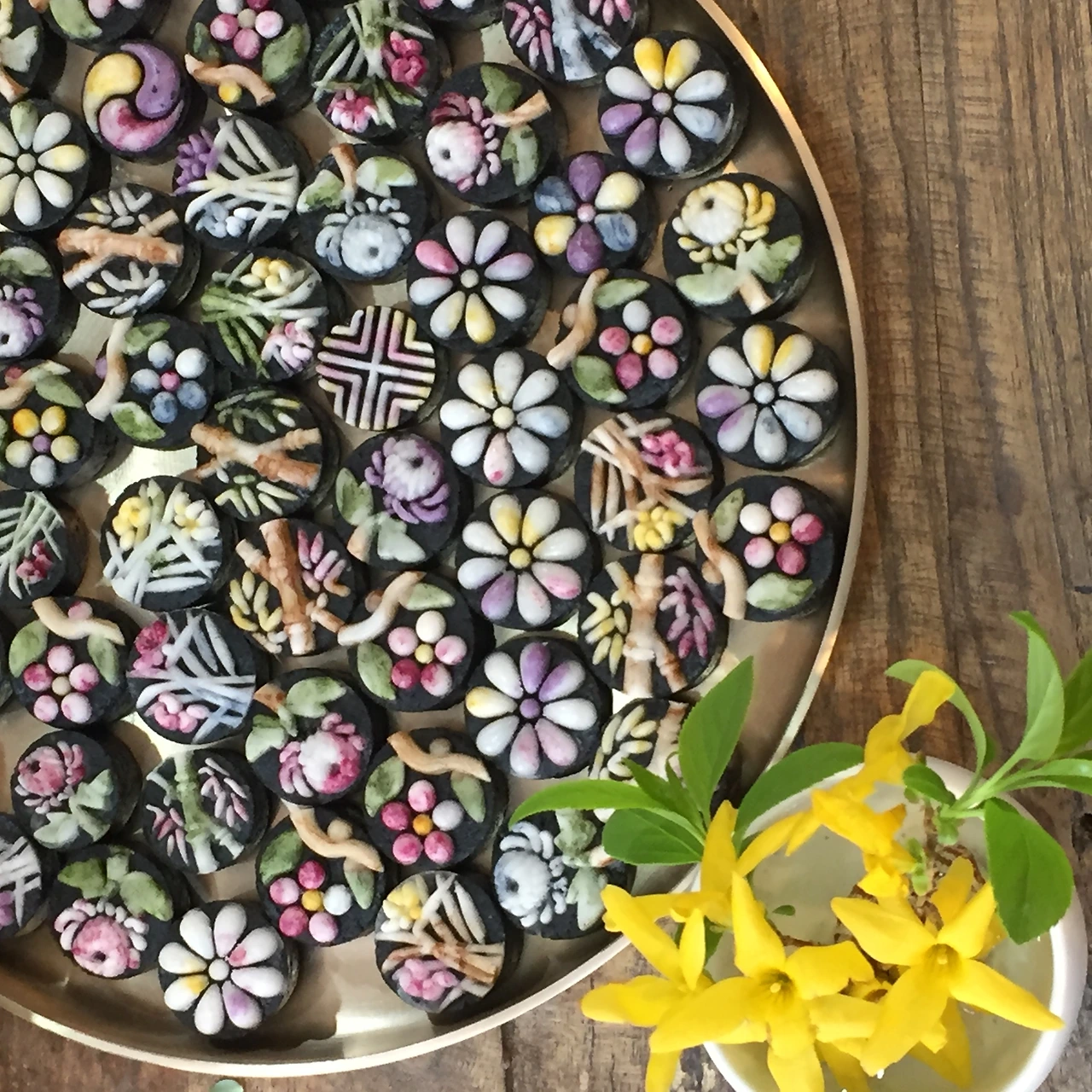흑임자 꽃다식 만들기1. 흑임자, 물엿, 소금을 섞어 반죽한다.2. 김이 오르는 찜기에 흑임자 반죽을 10분 찐다.3. 따듯할 때 절구로 찧어 노루지로 기름을 뺀다.4. 흑임자 반죽을 다시 10분 찐다.5. 슈가파우더를 석어 반죽한 후 절구로 찧어 노루지로 기름을 빼서 반죽을 완성한다.6. 반죽은 구절판 두께 X 10cm 크기로 만들어 둔다.