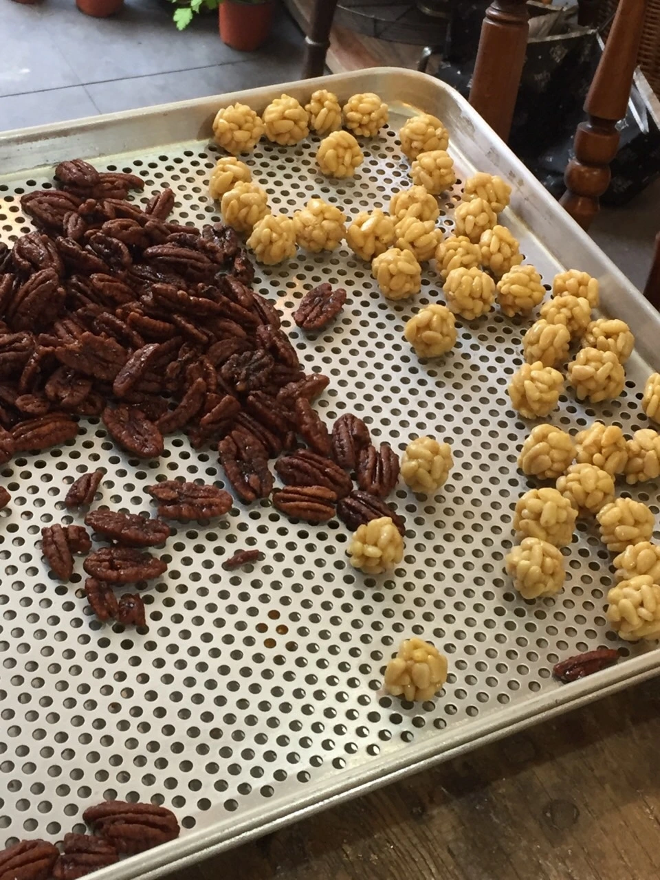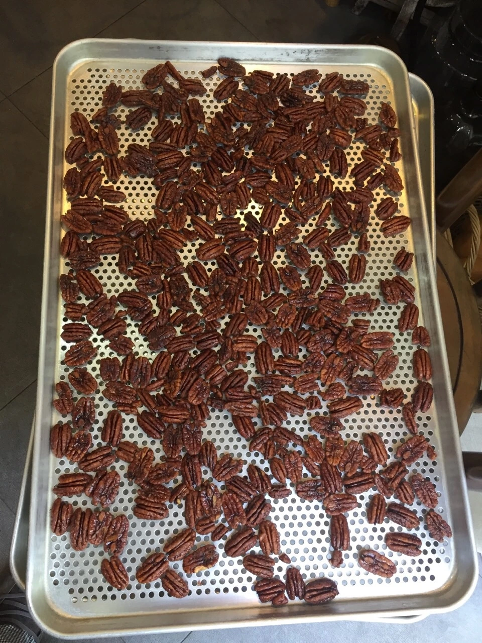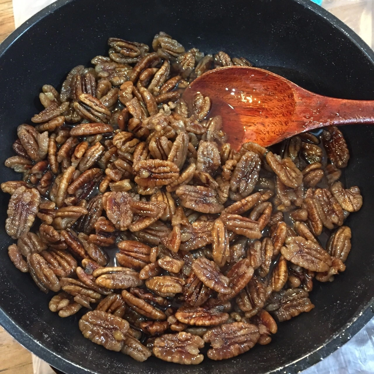 3. 시럽이 되직해지고 피칸이 반짝반짝 윤기가 생길때까지 졸여준다.