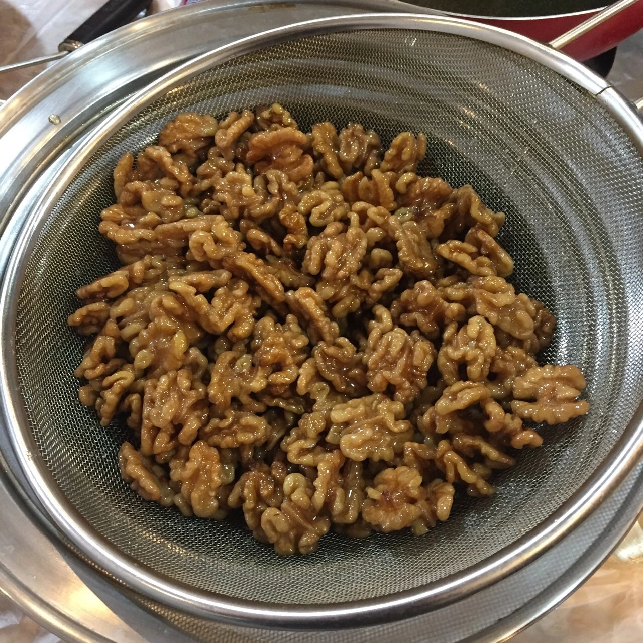 3. 시럽이 되직해지고 호두가 반짝반짝 윤기가 생길때까지 졸여준다.