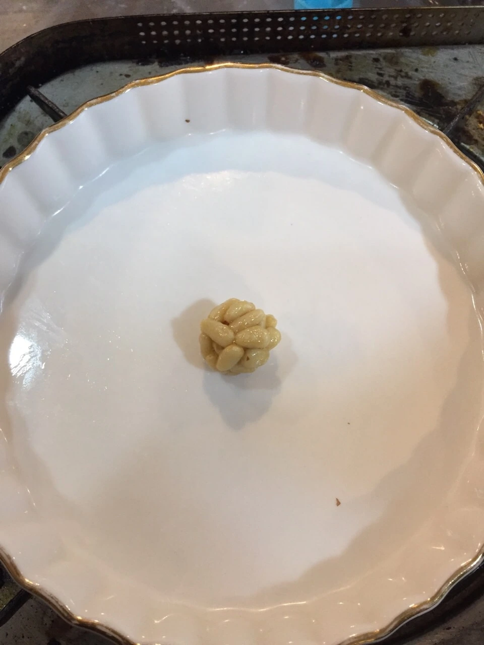 6. 타공판으로 옮겨 기름을 제거한다. 기름 제거는 타공판 닦기, 붙은 호두 떨어트리기, 호두 비벼 닦기 순으로 진행한다