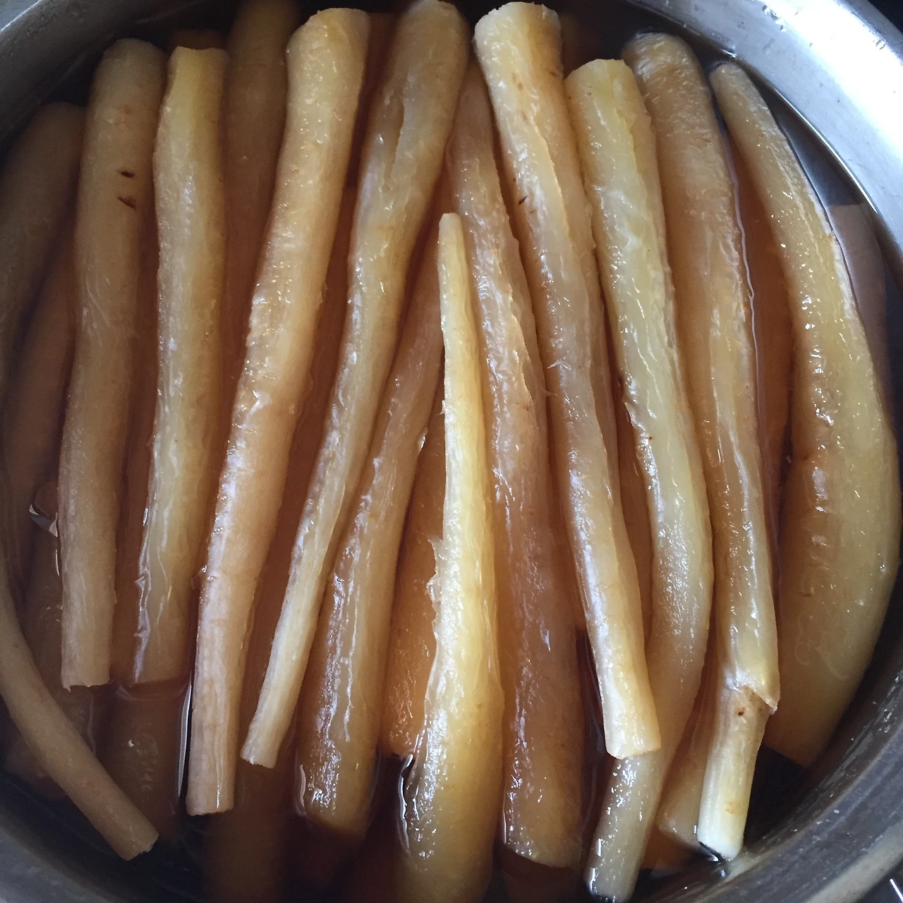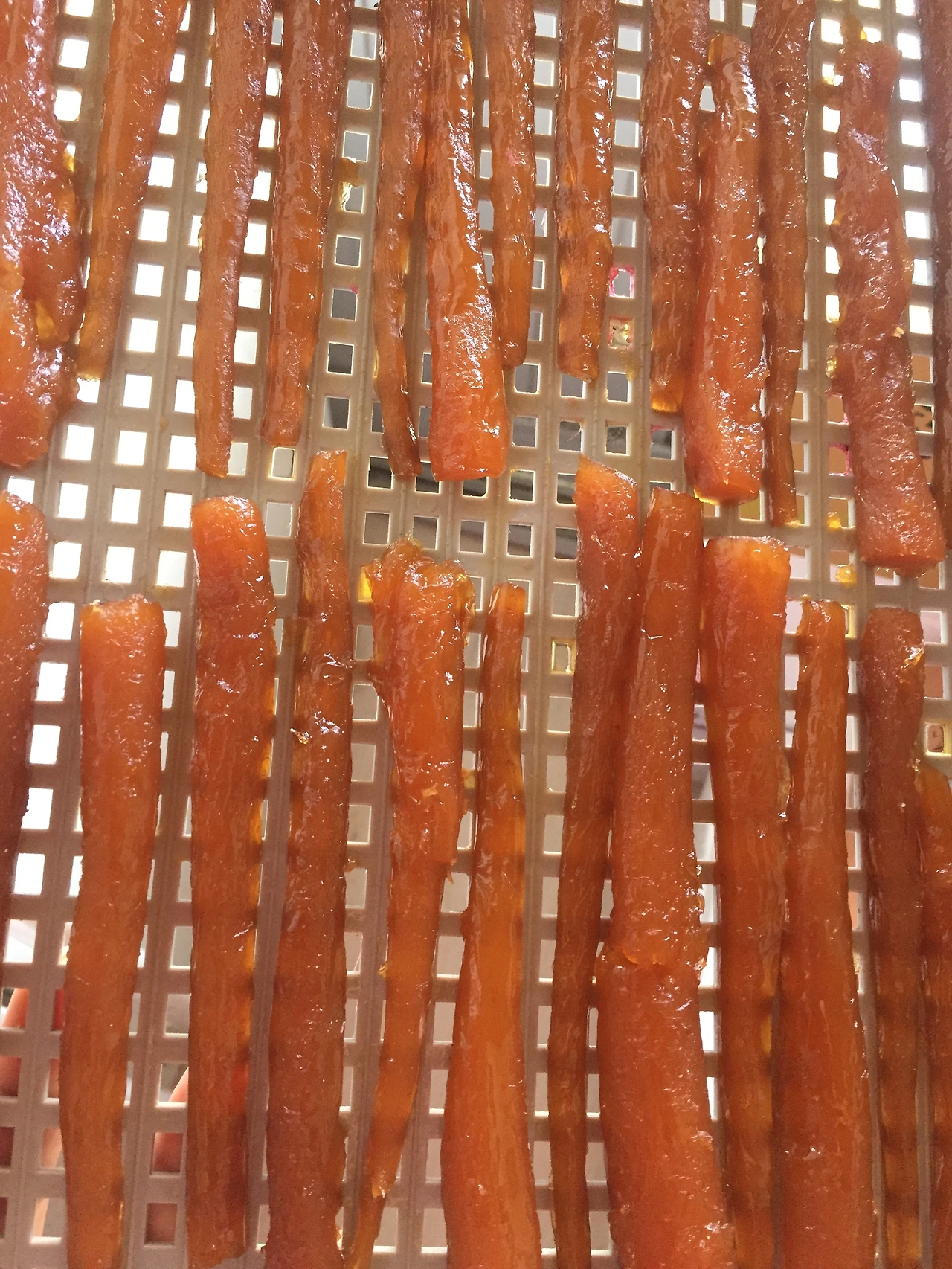 1. 가는 꼬리 부분에 엿물 발라가며 건조하기