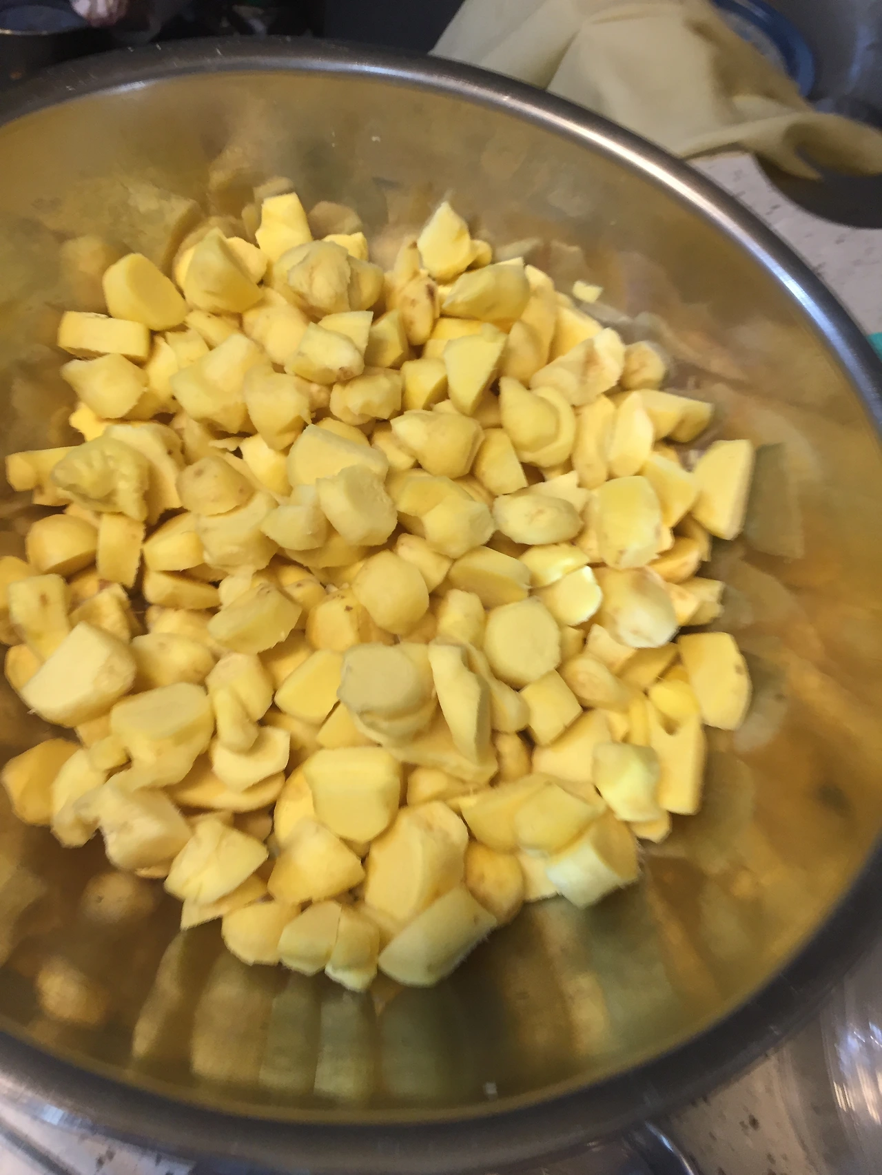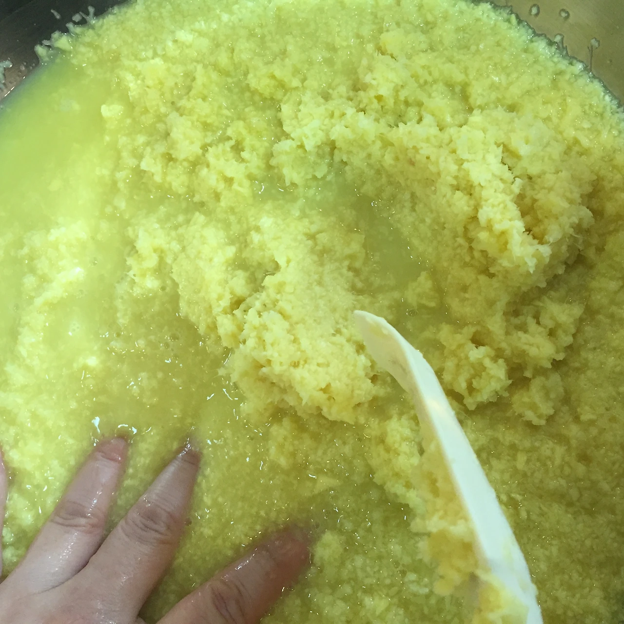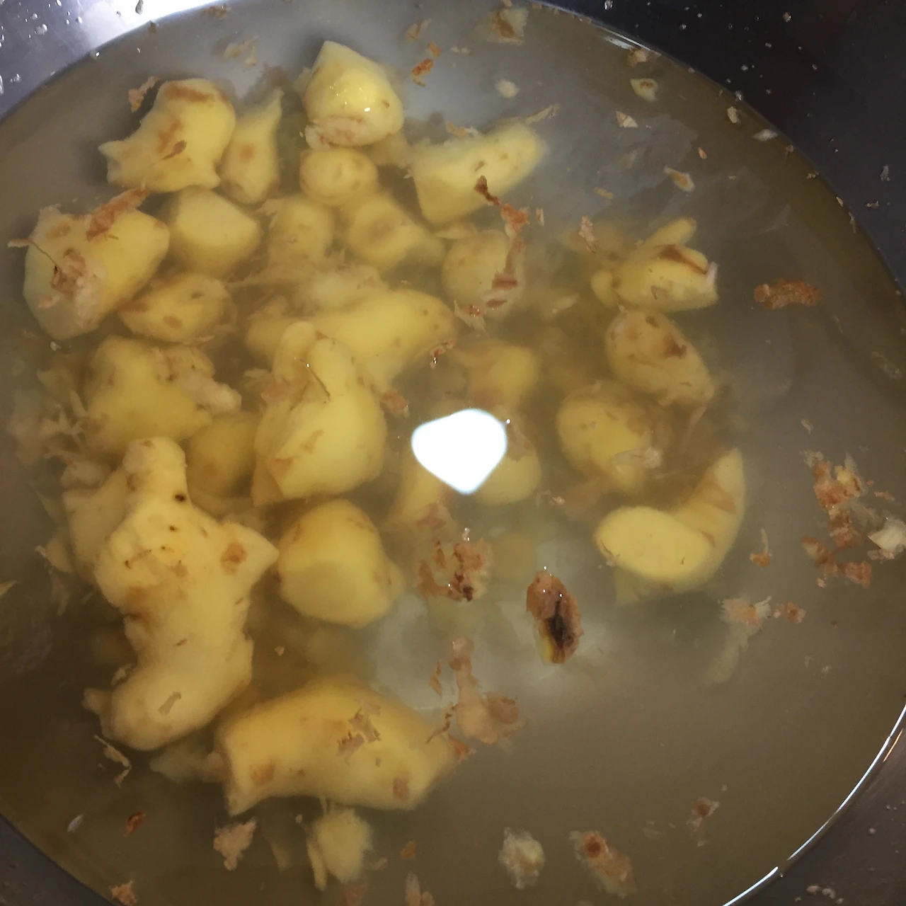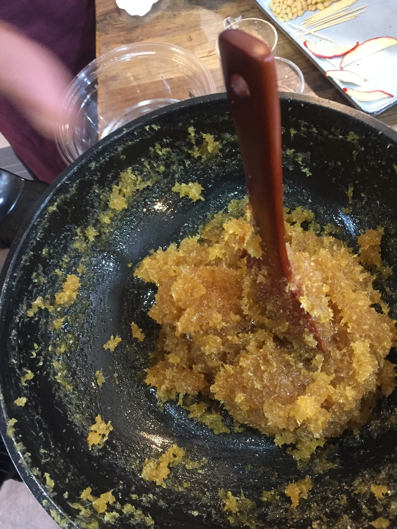 4. 생강, 조청, 꿀을 넣고 강불에 수분 날린 후 한덩어리가 될때까지 중약불에 졸인다.