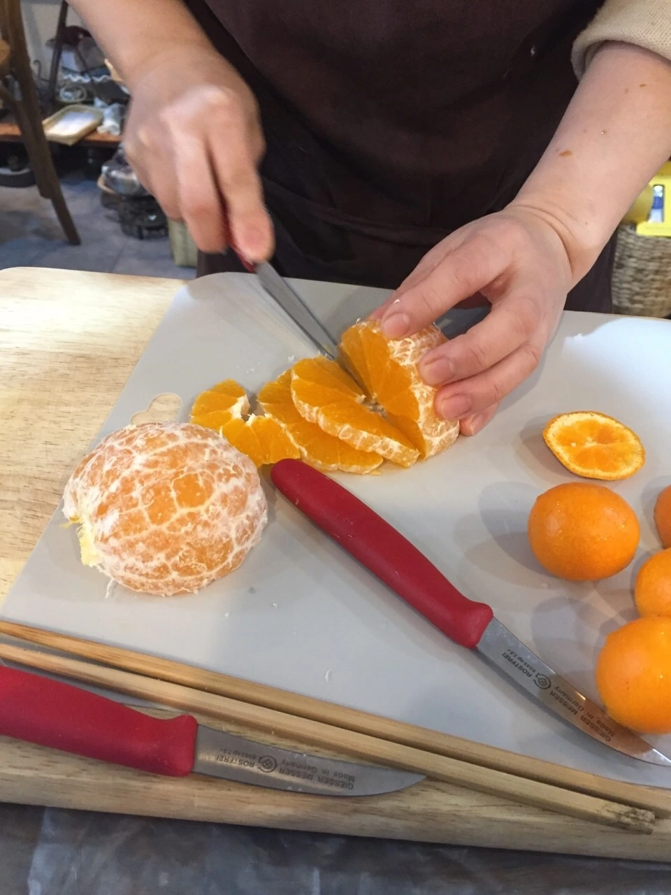 - 얇은 것 2-2.5mm : 시트러스계열 과일, 미니 오렌지, 청귤(5월쯤 쓴맛 빠진 것), 자몽 등
