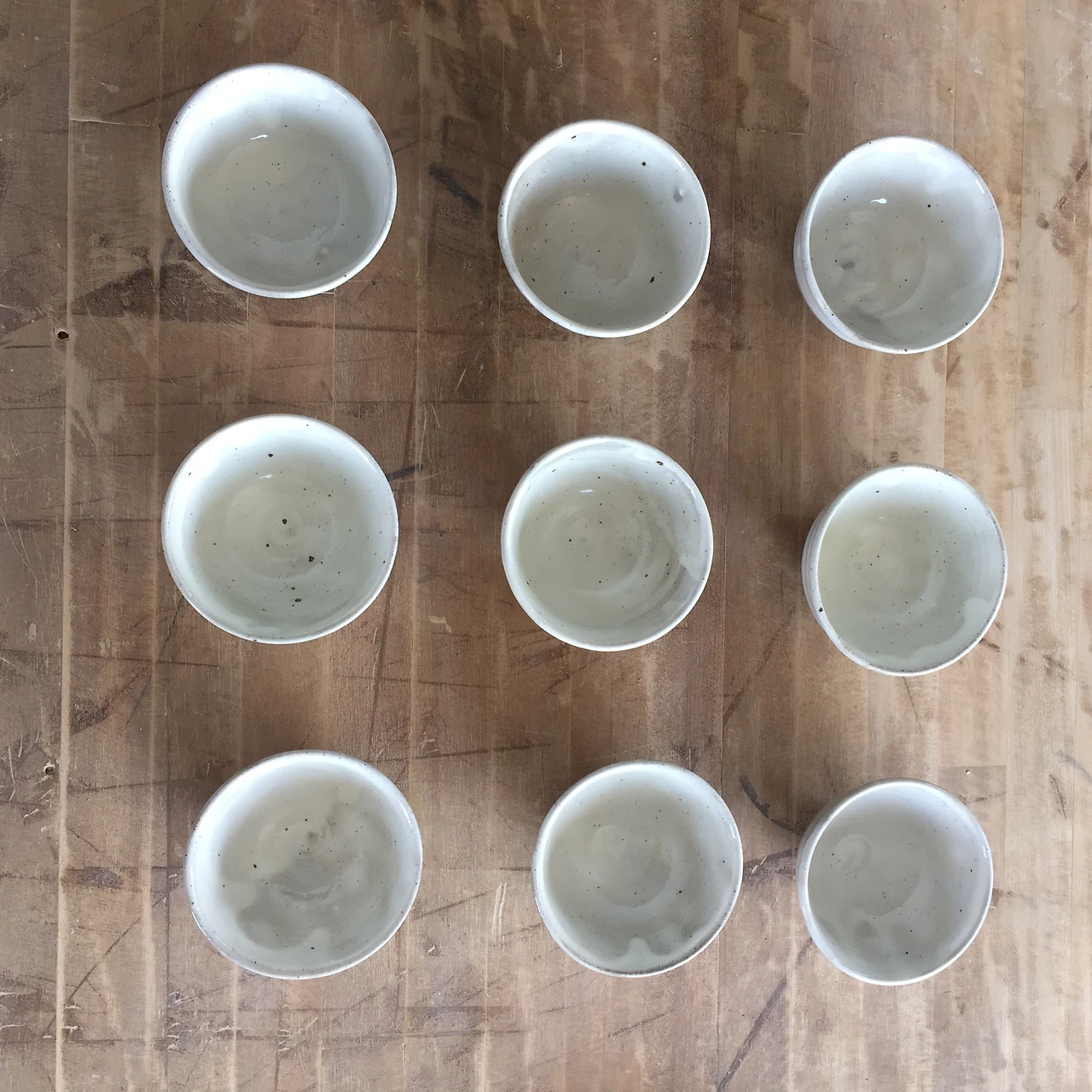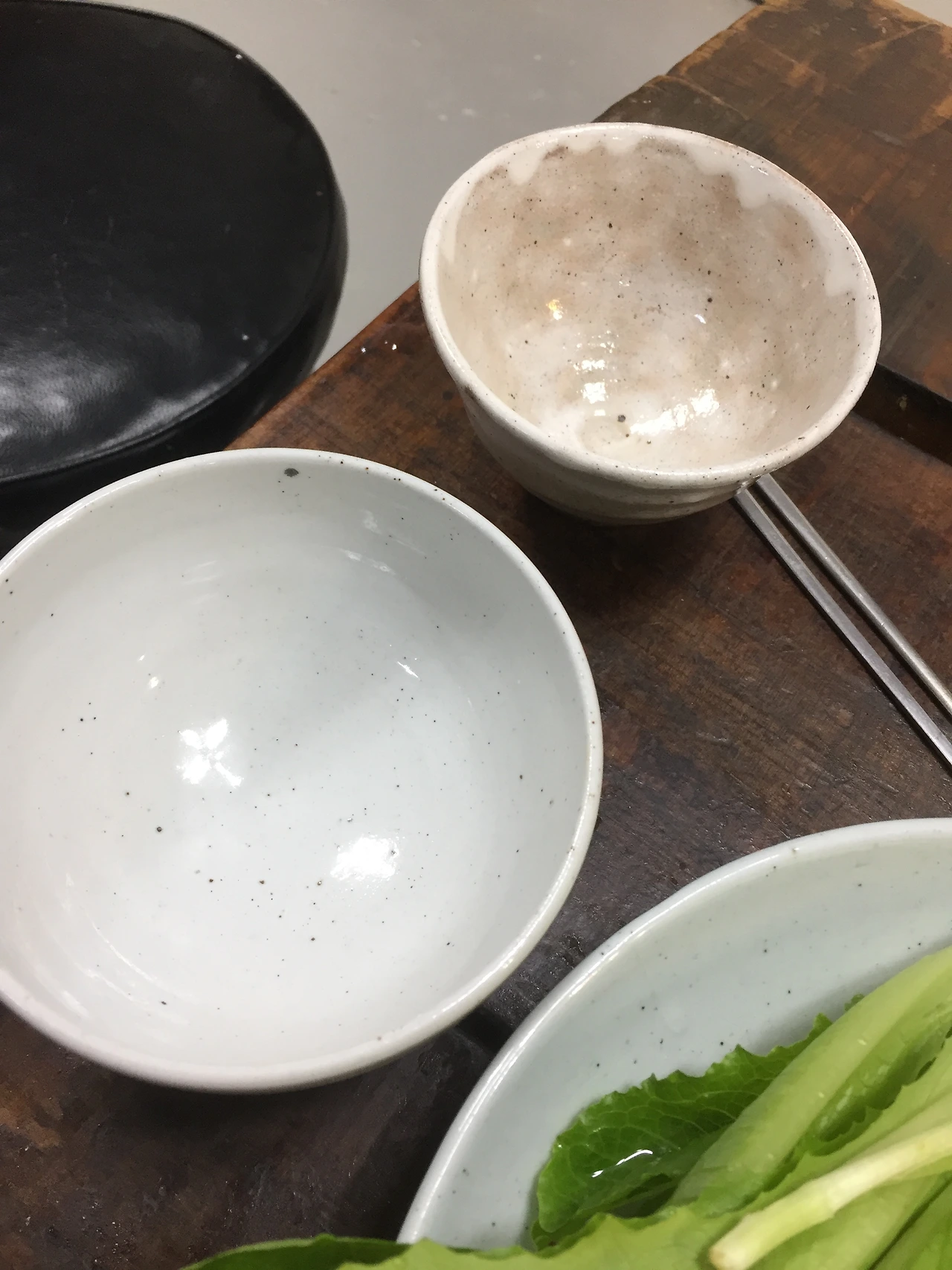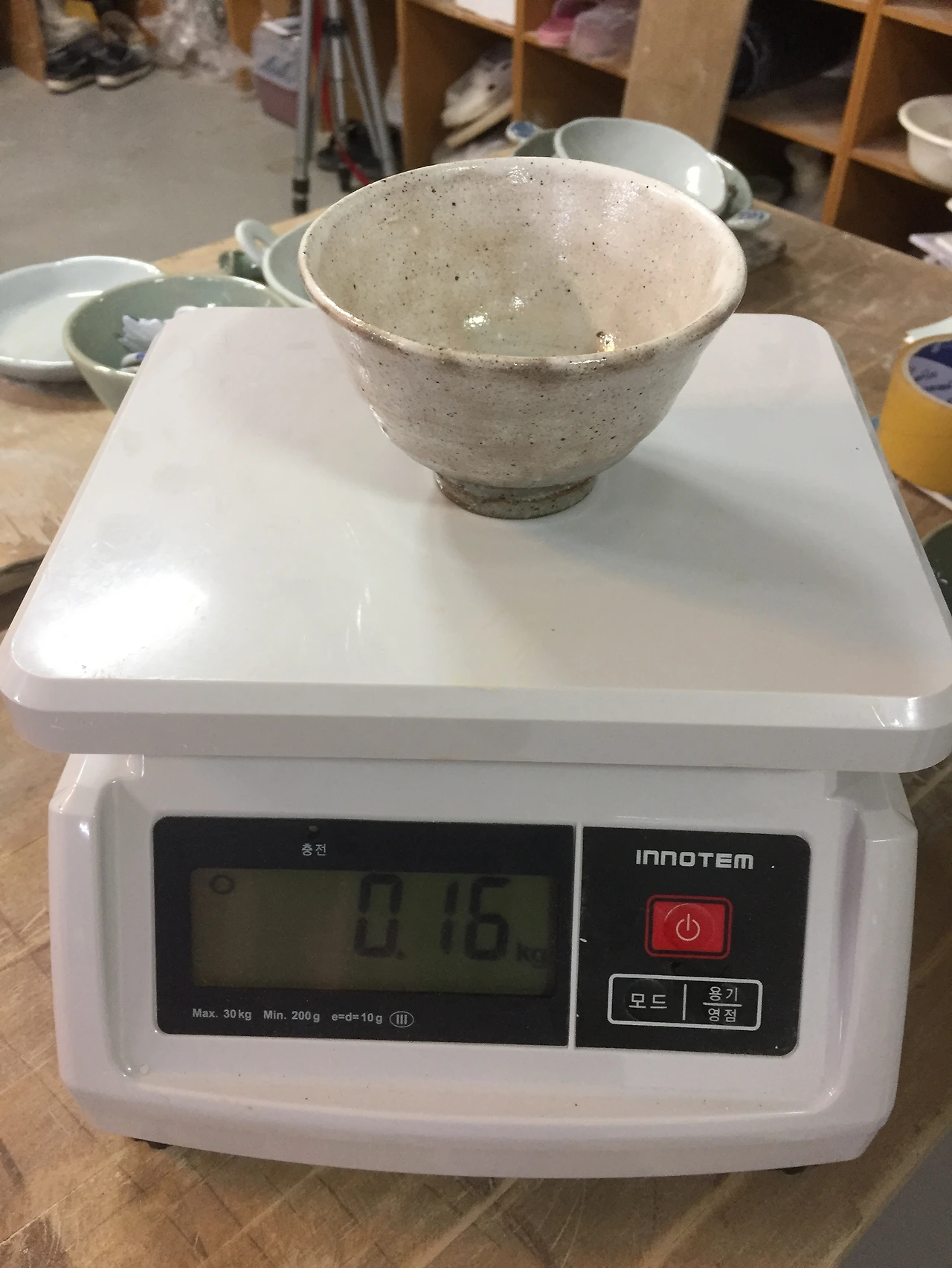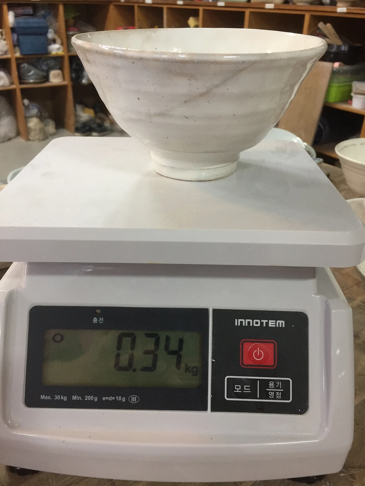 그릇의 무게는 400g이 넘으면 무겁다 해서 350g 이내의 무게로 만든다. 340g 의 분청다완을 크기를 줄여 하얀쌀 밥그릇으로 구웠다. 160g 이 가벼운 밥그릇에는 배꽃이 피어있다. 숭늉을 담으면 꽃이 물을 머금어 더 또렸해진다. 밥을 담으면 밥의 잔여 수분을 흡수해 그릇 아래쪽 밥도 질척거리지 않고 고슬고슬하다. 고두밥이나 설기 시루 뚜껑을 면포로 감싸 수분을 흡수시키는 것과 같은 이치이다. 물 먹는 밥그릇 ... 하얀쌀이 준비한 도자 밥그릇이 분청사발인 이유이다. 1분 이내에 그릇 형태를 만들고 다시 1분 이내에 단 한번만에 굽을 깎는 기술은 #장석현 선생님의 연구 성과이다. 선생님의 도자 역사가 고스란히 깃든 이 아름다운 분청사발 밥그릇은 선생님 작품이고 내게는 밥그릇의 과학이다. 배꽃 핀 하얀쌀 분청사발 밥그릇의 무게는 200g 이내의 가벼운 그릇이다. 물 먹는 밥그릇 분청사발은 저절로 밥의 여분의 수분을 흡수한다. 바닥의 마지막 한숟가락까지도 고슬고슬한 밥을 즐길 수 있다.