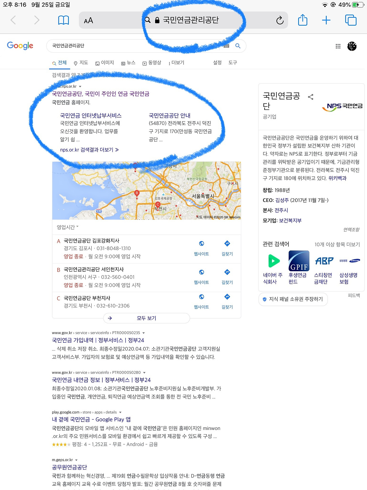 우선 인터넷에서 “국민연금관리공단”을 검색했다. 국민연금관리공단 홈페이지를 클릭했다.