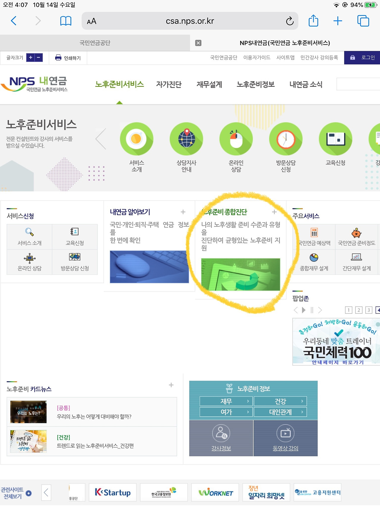 “노후준비 종합진단” 컨텐츠가 보인다. 클릭해보면