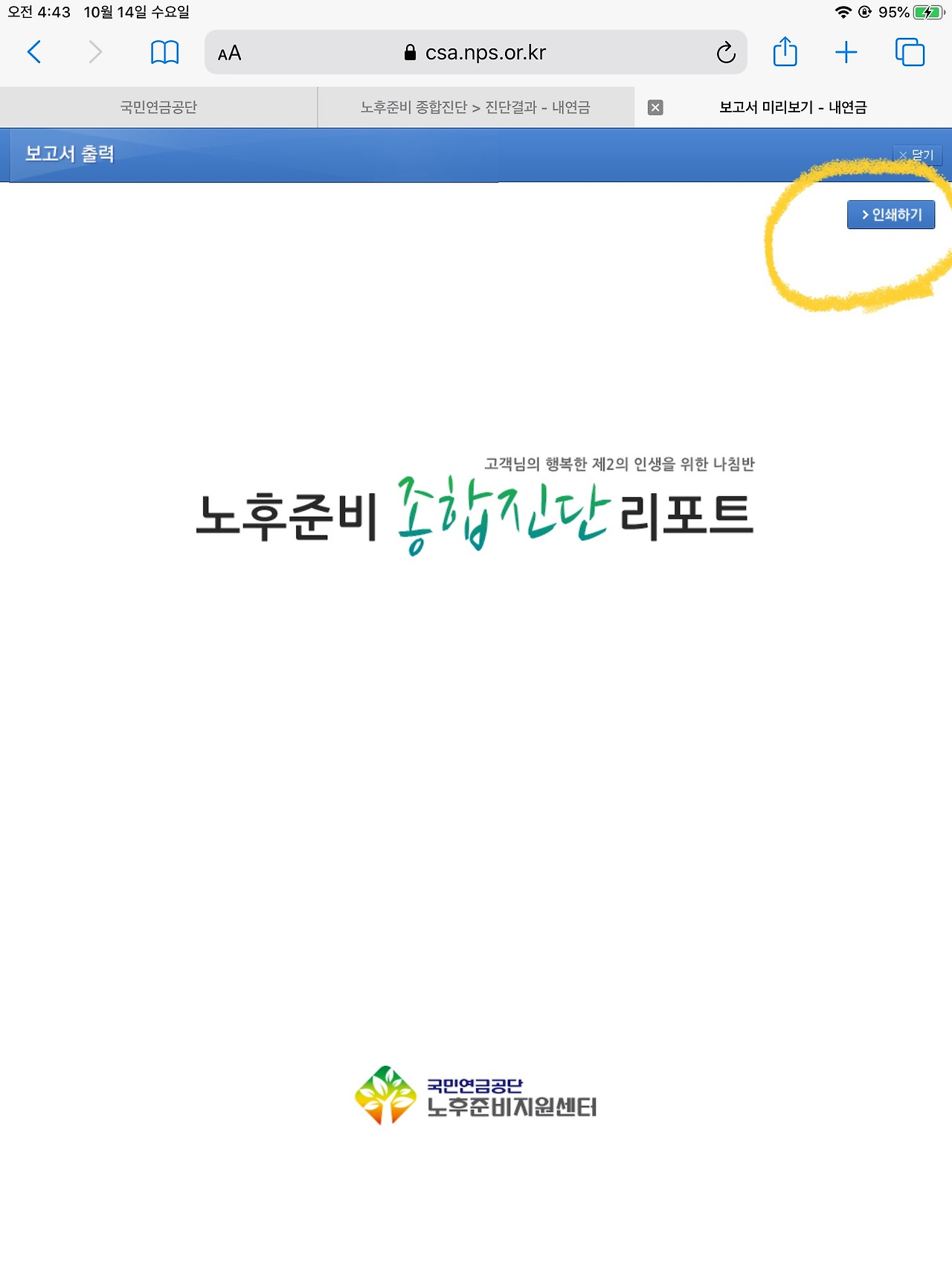 노후준비 종합진단 리포트를 인쇄할 수 있다.