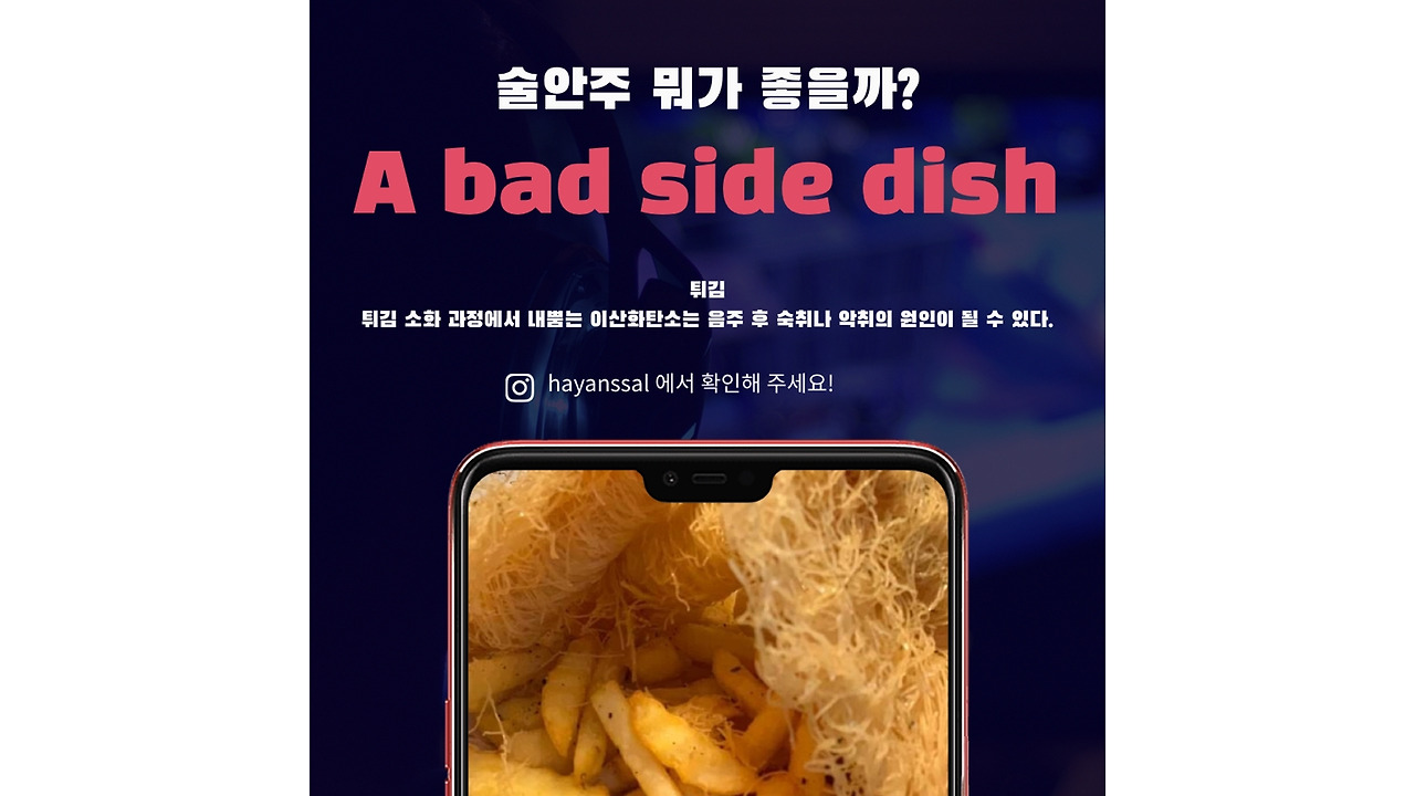 튀김은 산성성분을 가진 음식으로 소화 과정에서 내뿜는 이산화탄소는 음주 후 숙취나 악취의 원인이 될 수 있다.