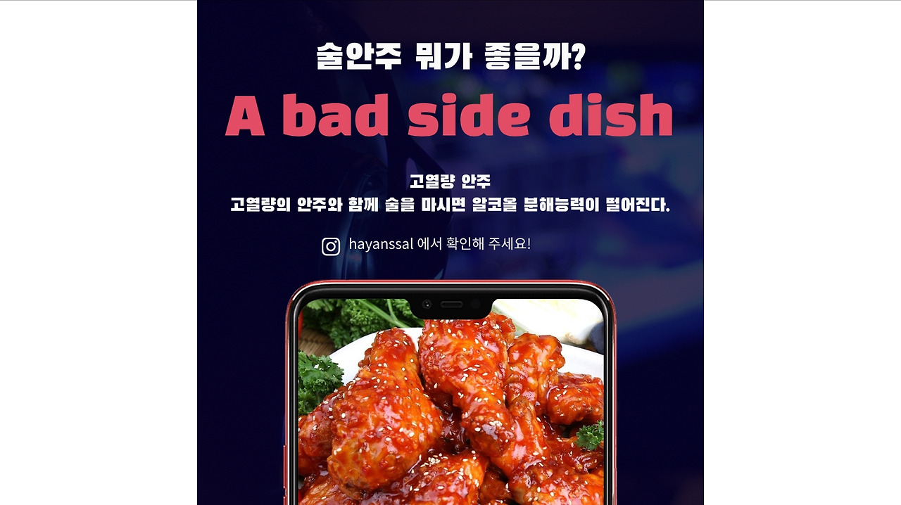 요즘 젊은이들은 치맥, 피막 등 치킨이나 피자 등이 인기 안주이다. 술을 고열량의 안주와 함께 섭취할 경우 알코올 분해능력이 떨어지고, 지나친 나트륨 섭취로 과음의 요인이 된다. 따라서 고칼로리 음식을 섭취로 성인병의 원인이 될 수도 있다.