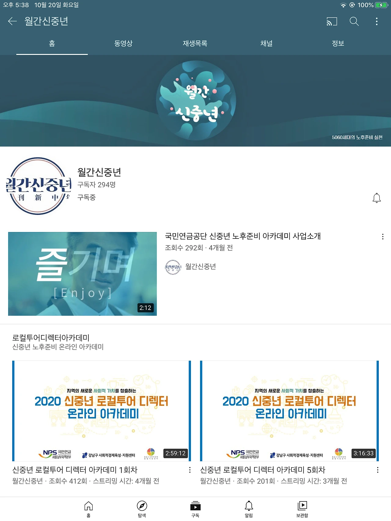 국민연금공단 홈페이지, Youtube 월간신중년 제공 컨텐츠는 제법 배려의 아이콘인 셈이어서 주목해볼 가치가 있다. 나는 국민연금공단 홈페이지 회원 가입과 월간신중년 구독을 했다. 필요하면 검색하고, 양상 업로드를 알람을 통해 알려준다. 마음한켠 위로와 의지가 된다.