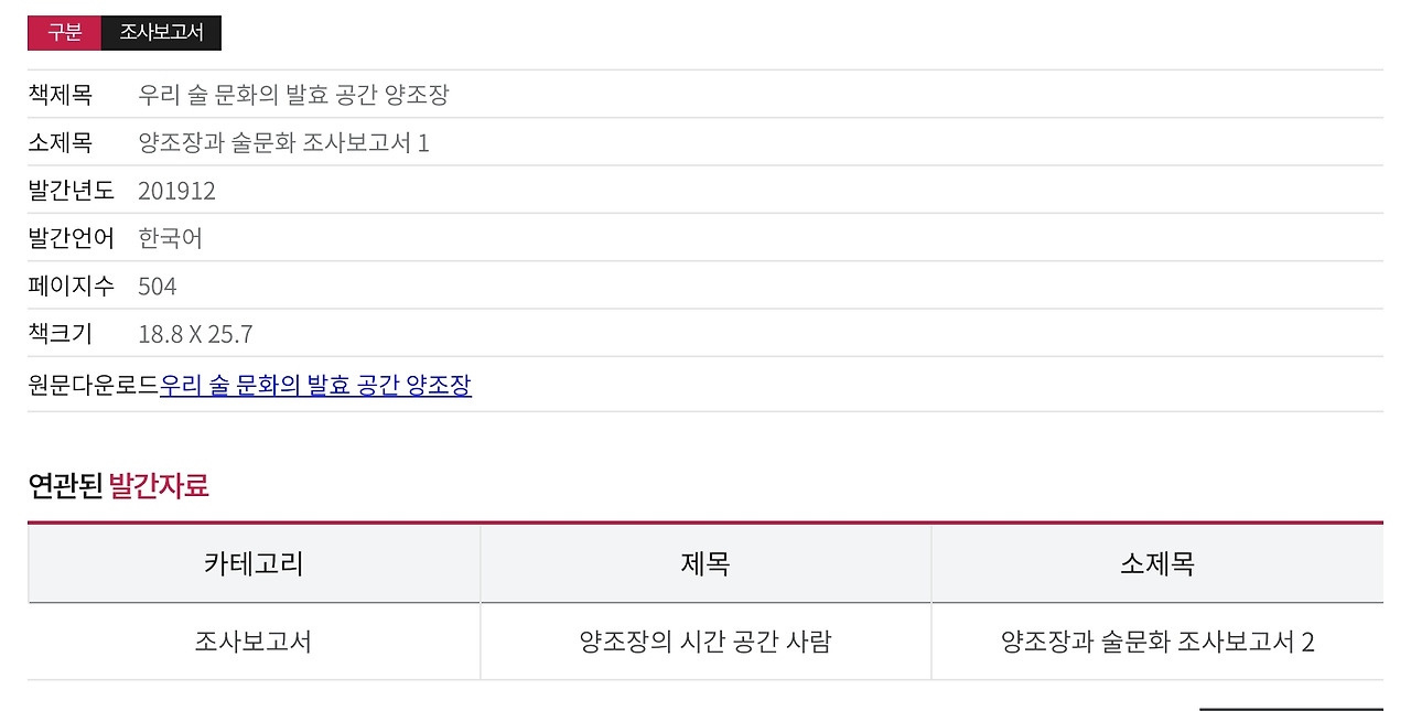 국립민속발물관의 이런 수준 이하의 전시가 이해가 가지 않는 것은 올 해 국립민속발물관이 두 권의 막걸리 양조 관련 자료집을 낸 지 얼마 안되는 시점의 전시라는 지점이다. 단순한 자료집이 아닌 조사보고서는 각각 288페이지, 504페이지 분량이다. 이 전시 기준 소급하면 자료집은 또 얼마나, 어떤 내용일지 싶다.