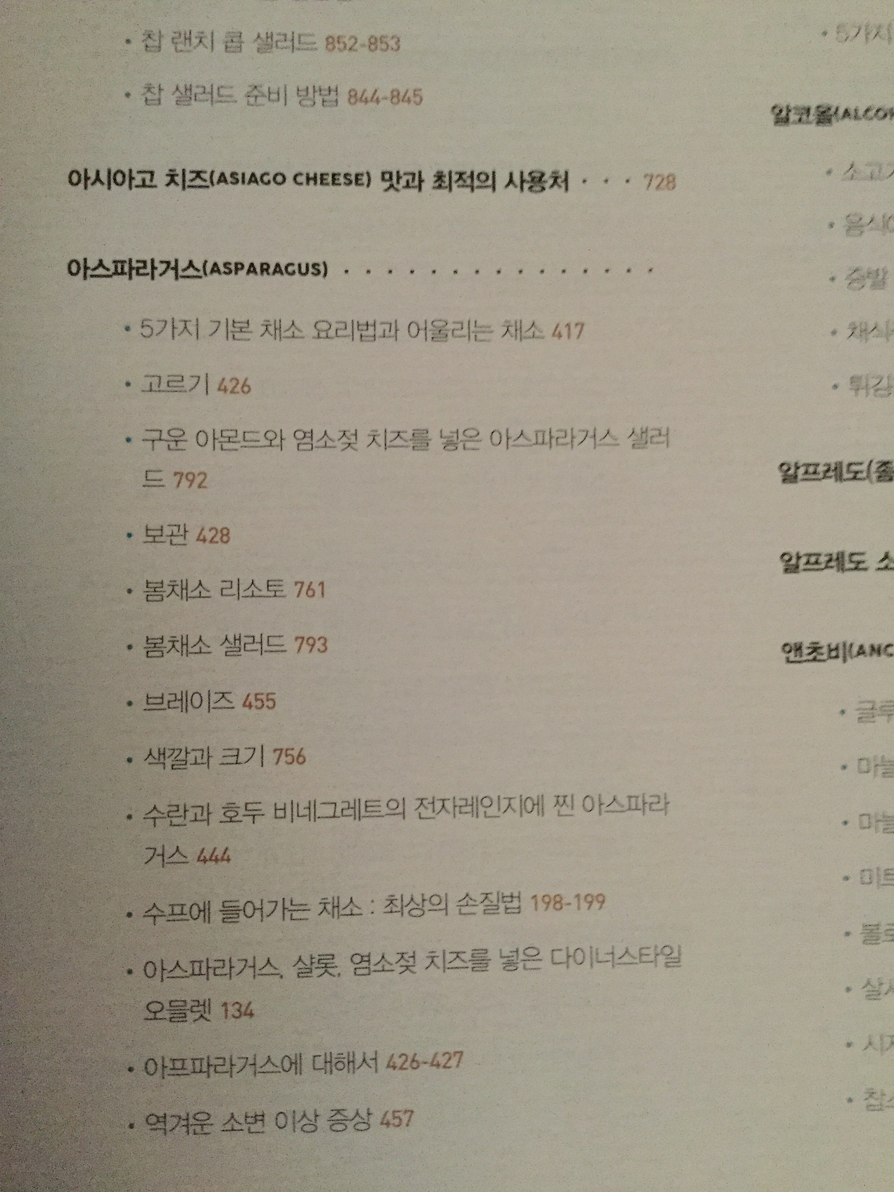 익숙하지 않은 아스파라거스를 펼쳐 본다. 다 읽은 후 찾았냐고? 아니다. 책 뒤에 친절한 INDEX 가 있다, INDEX 엔 아스파라거스 관련 주제가 제법 많기도 하다.