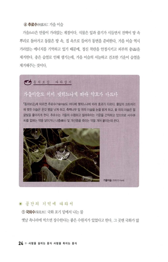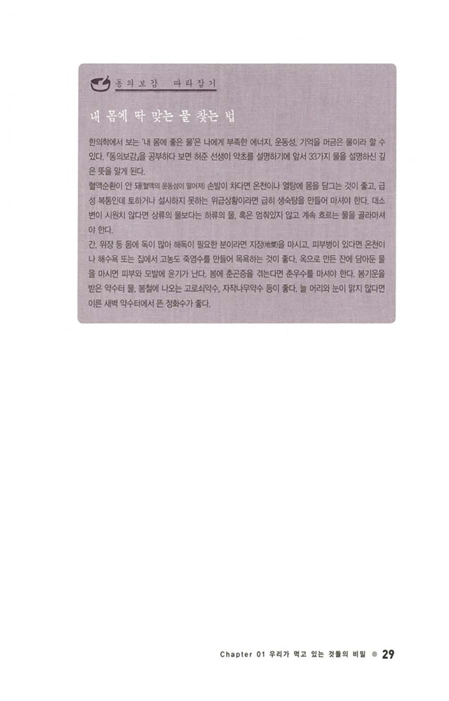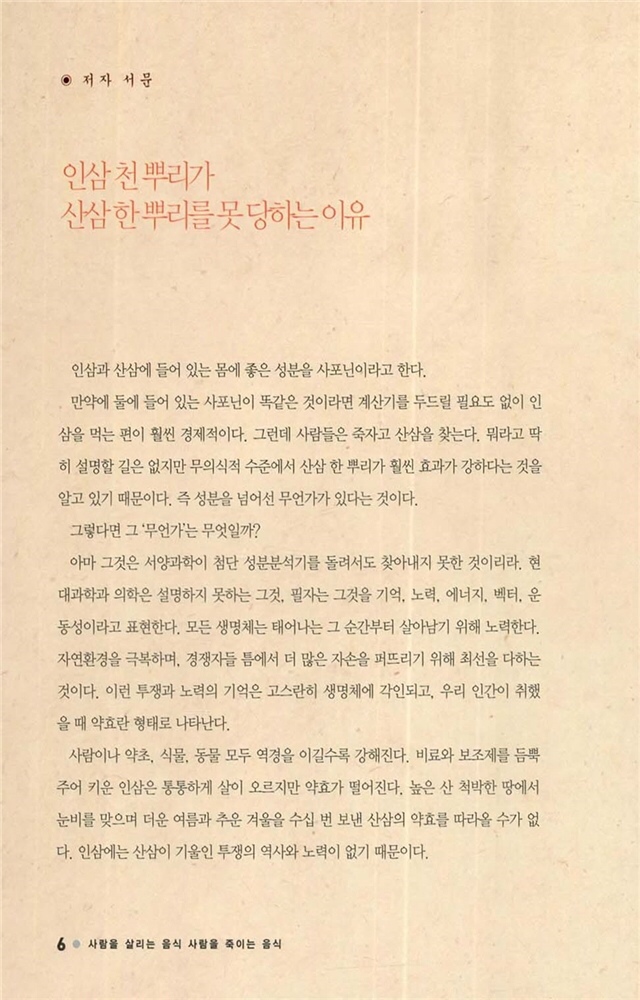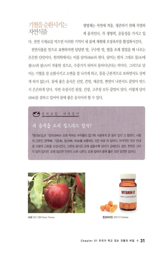 이 책 서브 타이틀이 '동의보감과 천기누설에 없는 위대한 생태음식 이야기' 이다. 허나 막상 책을 보면 [동의보감] 인용을 자주 접하게 된다.