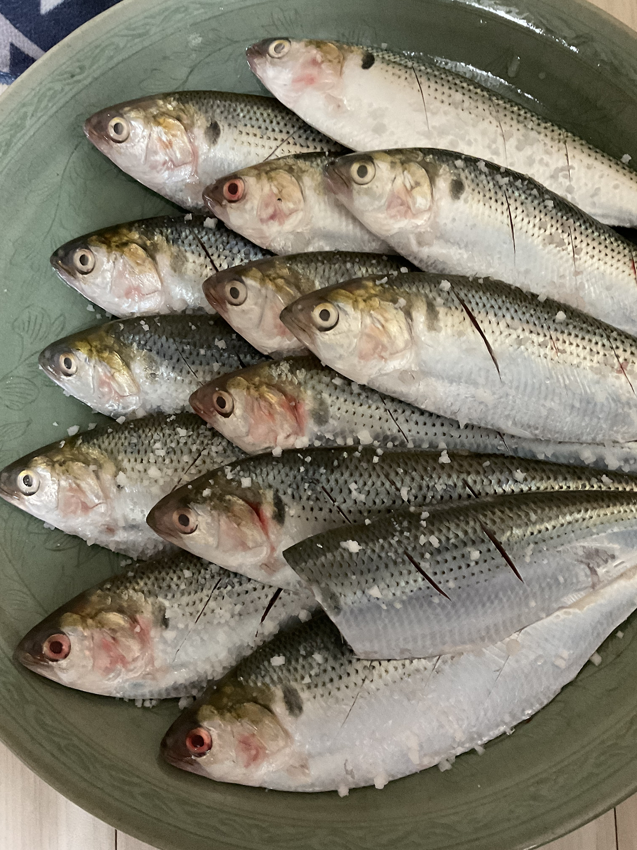 지느러미, 꼬리 정리하고 소금 살짝 뿌려두었습니다.