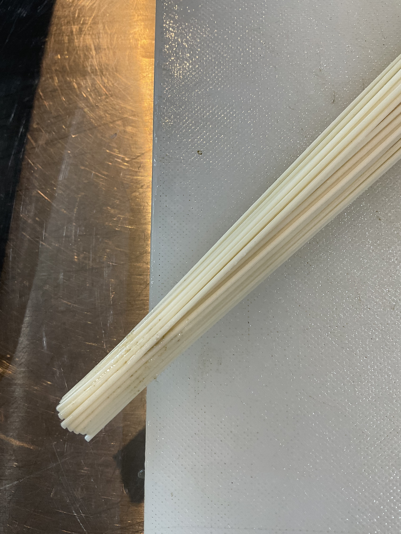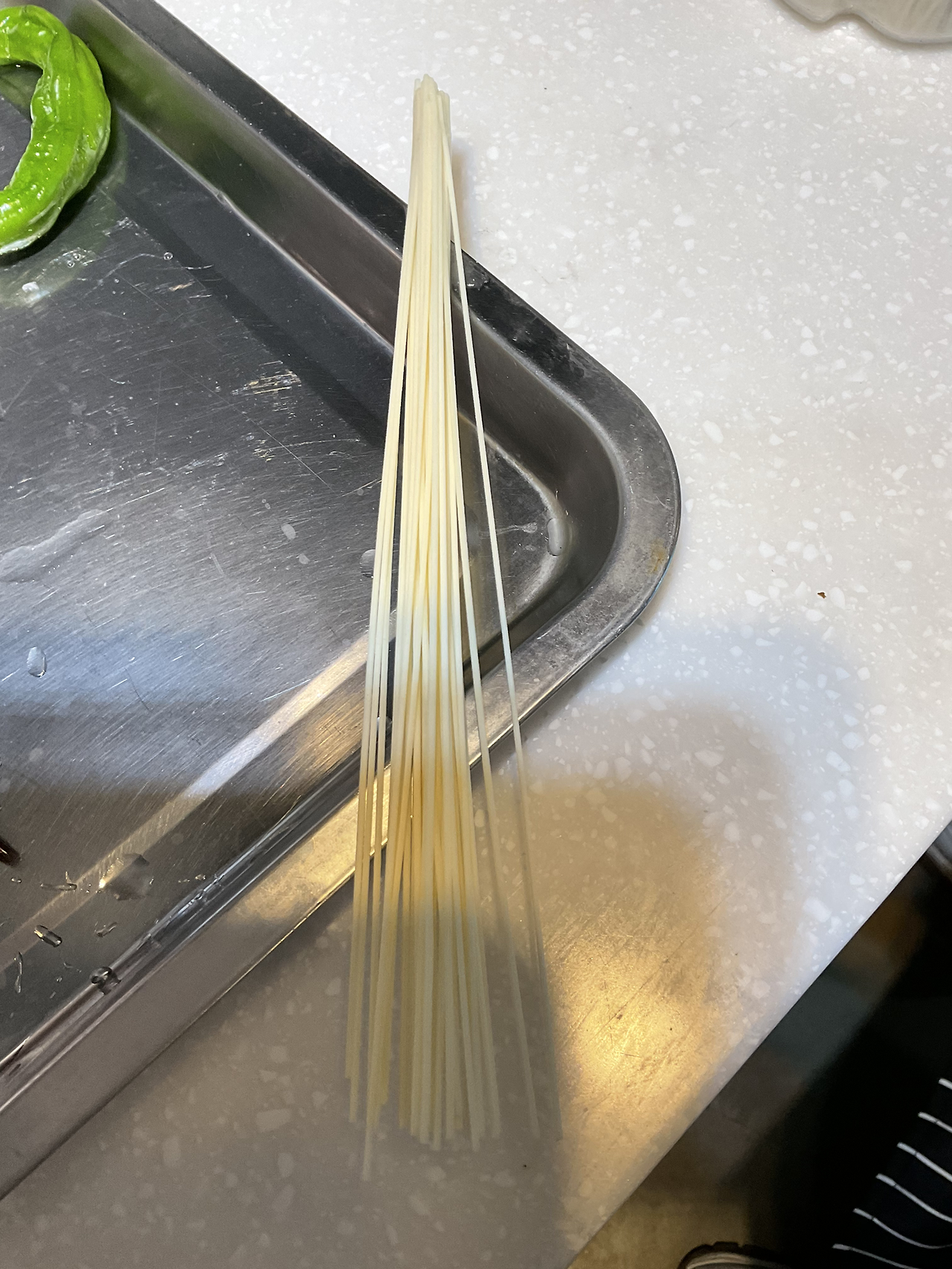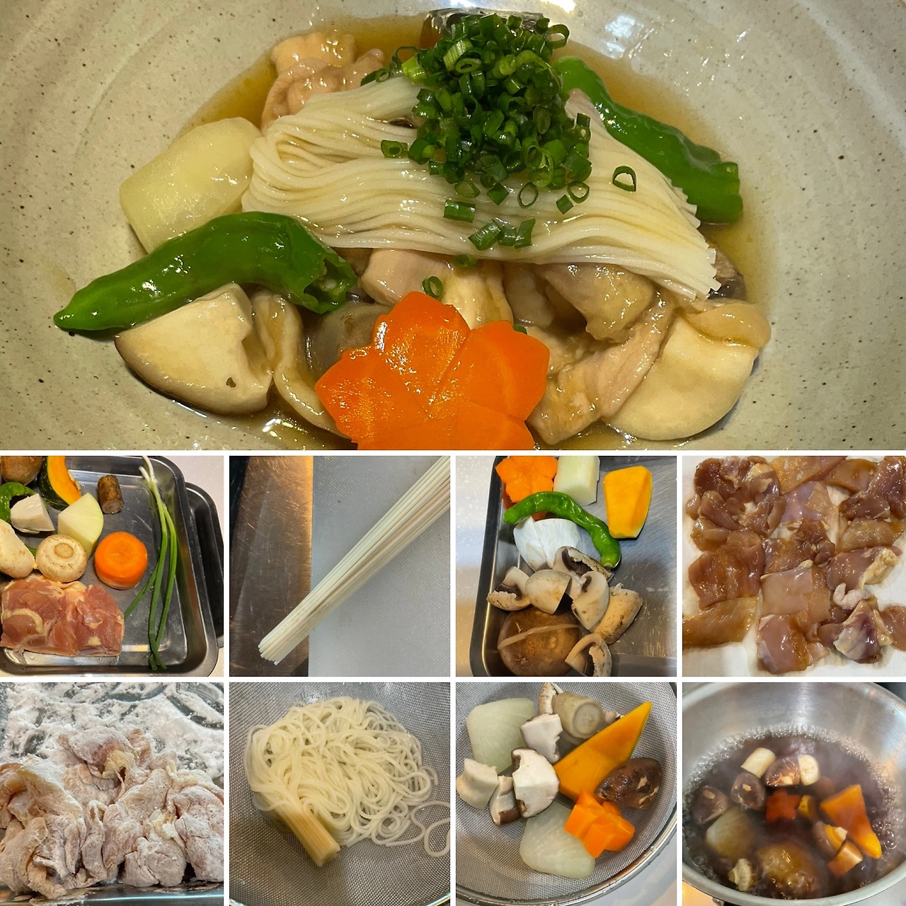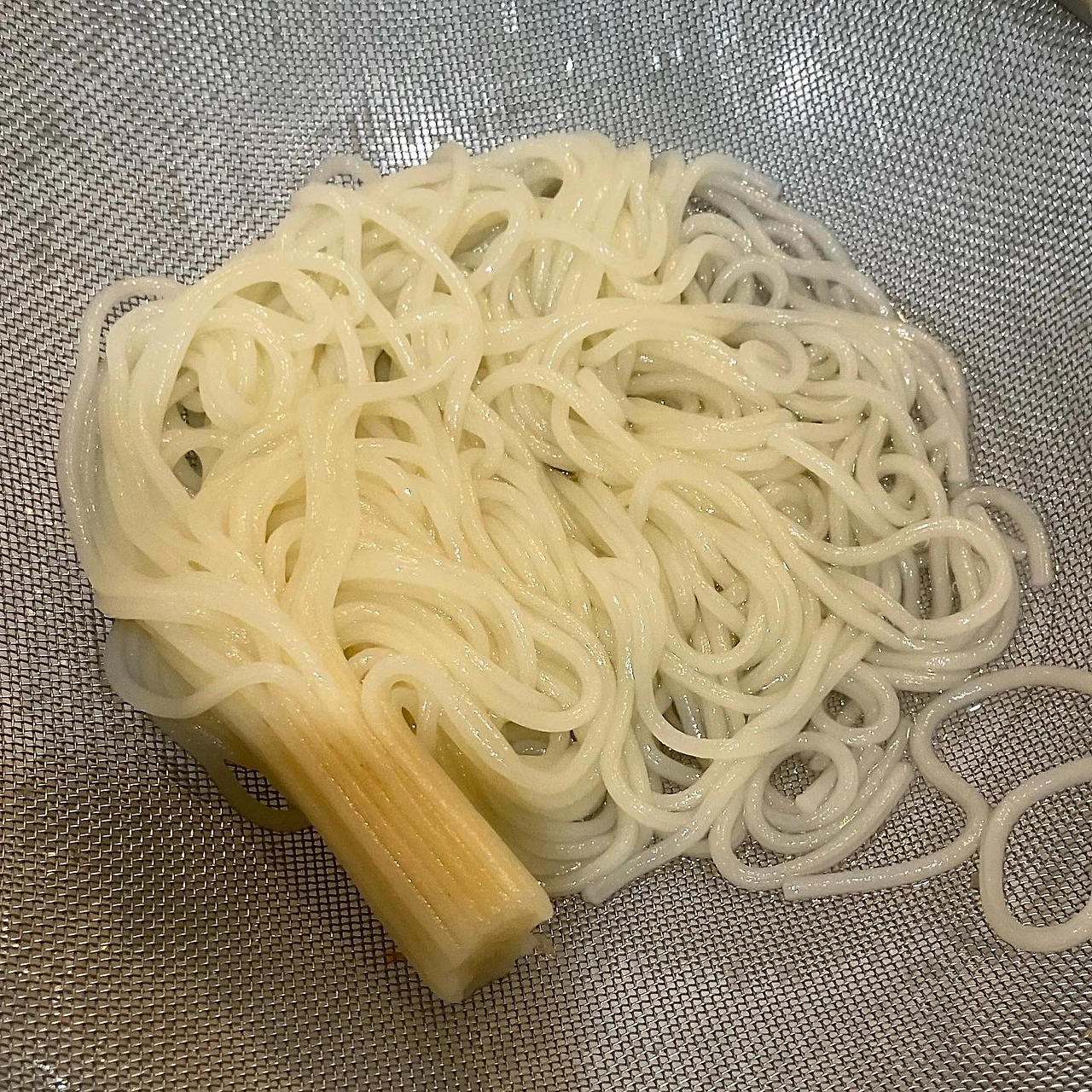 1. 소면 끝을 끓는 물에 담그어서 붙여둔다