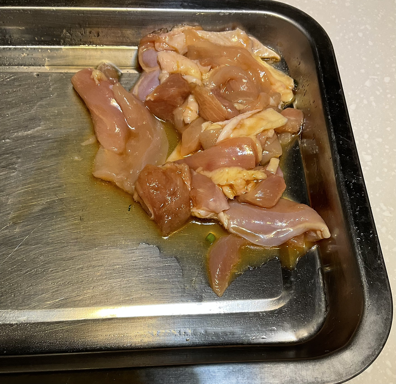 2. 닭고기 간 : 청주 1, 간장 1 (15분)