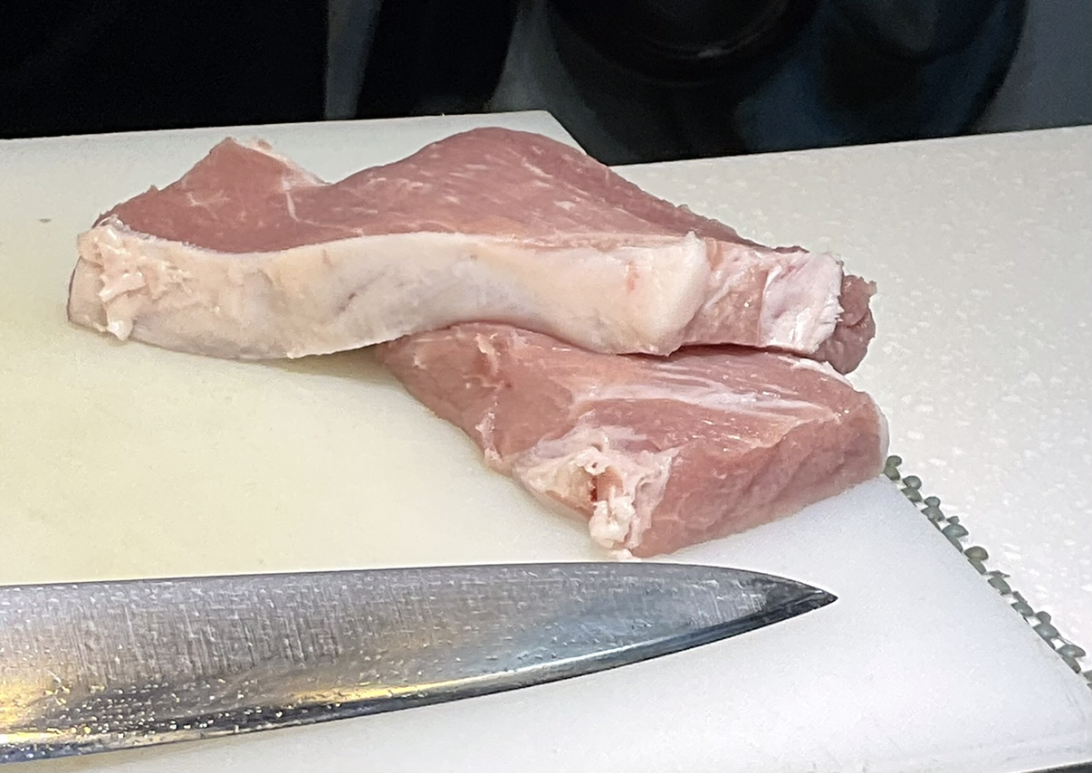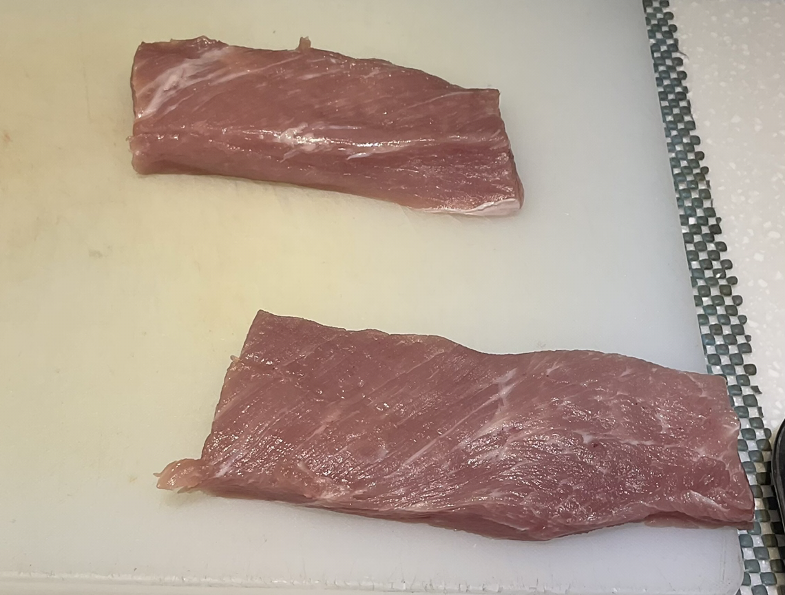 2. 등심까스 오늘은 두껍게, 결방향으로 잘라서 먹는다