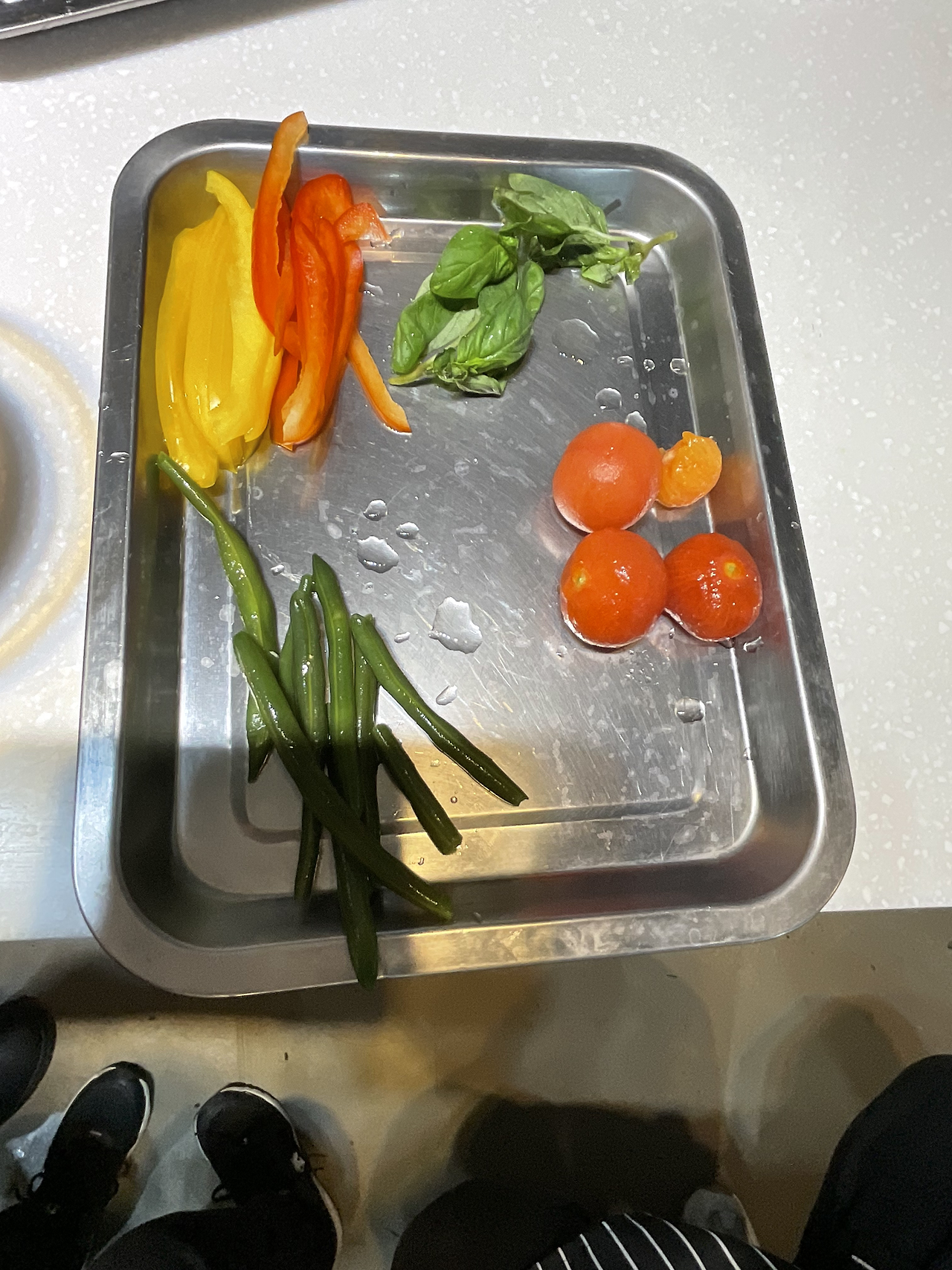 1. 방울토마토 4-5개 데쳐서 껍질 벗기기, 다지기
