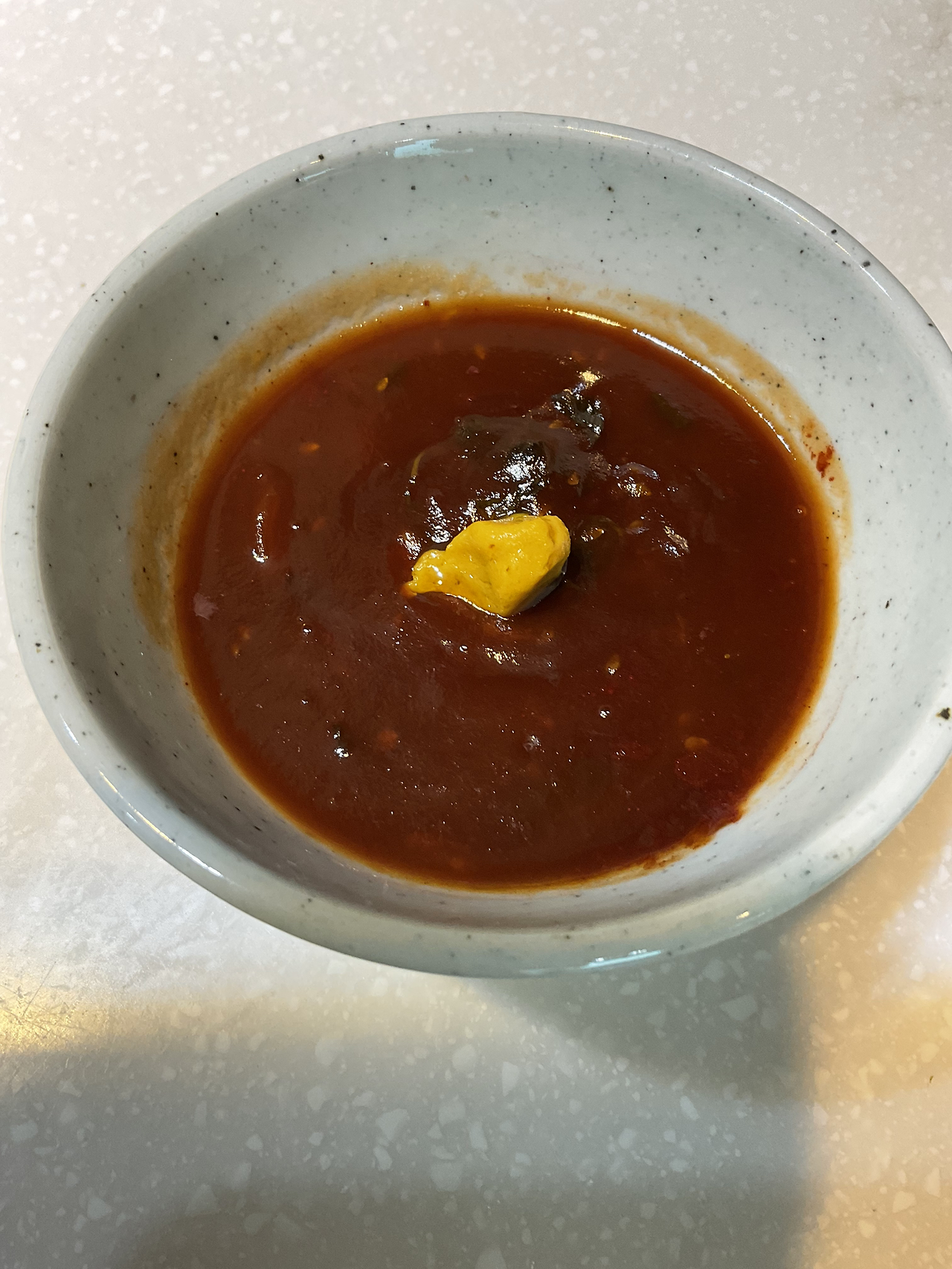 5. 완성 그릇에 소스 담은 후 겨자 올린다
