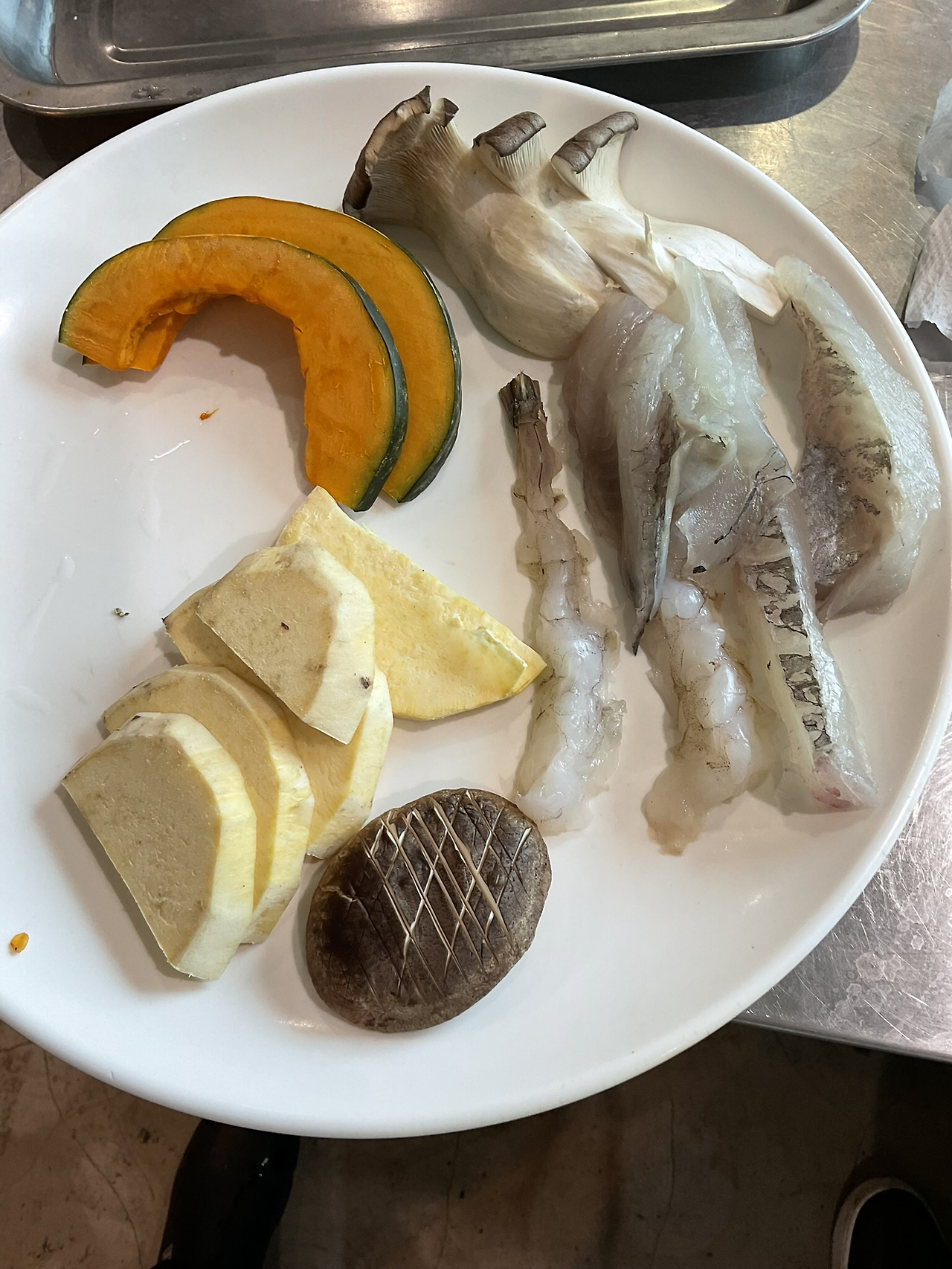 5. 새우 꼬리 정리, 물집 주머니 제거, 두절탈각새우 21-25(1파운드에 21-25마리) 흰다리새우(블랙타이거가 맛있다) 업장 새우튀김용 16-20 새우 튀김에 적당함, 새우 눌러 길게