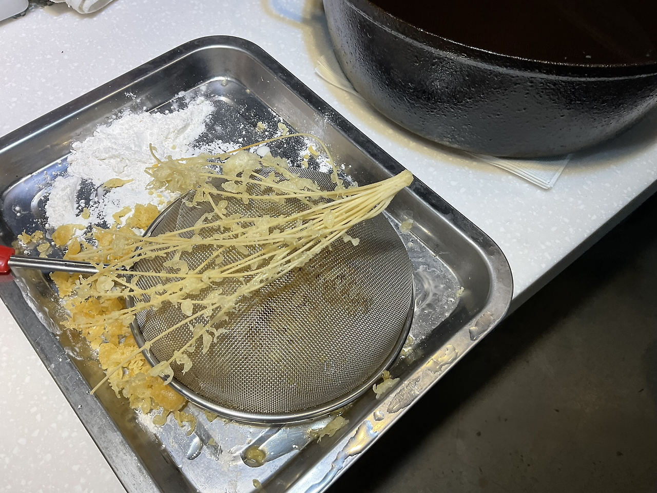 4. 소면 끝 붙이기, 꽃 뿌려 튀김